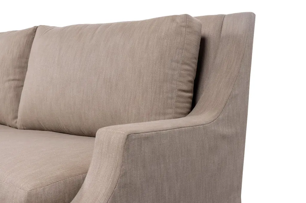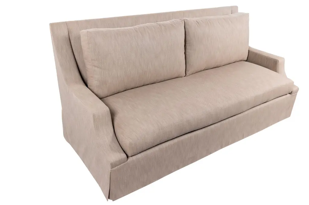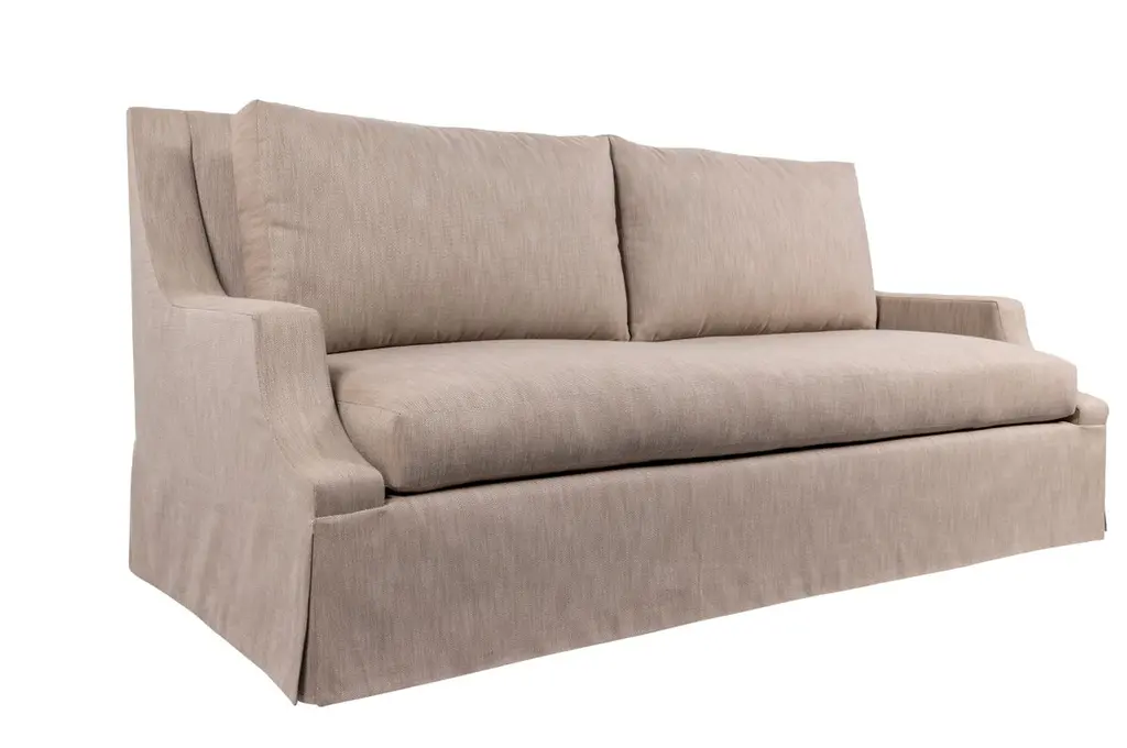 Designed by Ashley Yeates, 'The Modern Hepburn,' handcrafted in California using FSC-certified wood, natural tree latex foam, organic cotton, wool batting, non-toxic finishes and natural fabrics. COM/COLGable Skirted Sofa is inspired by the golden era of Hollywood. Luxurious and modern this piece is created with classic American craftsmanship that will stand the test of time. Made with organic and environmental sustainable materials.Gable Skirted Sofa is inspired by the golden era of Hollywood. Luxurious and modern this piece is created with classic American craftsmanship that will stand the test of time. Made with organic and environmental sustainable materials.Ashley Yeates Collection is one of the few bespoke furniture collections on the market to focus on both sustainable principles and materials.Materials: Alder, Latex Foam, Wool, Ishi Style: 950-244 Organic CottonDimensions: 86"W X 38"D X 40"H