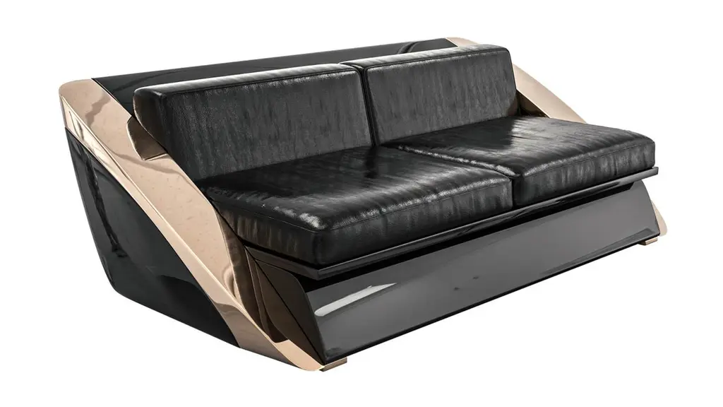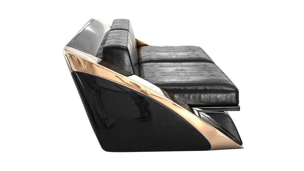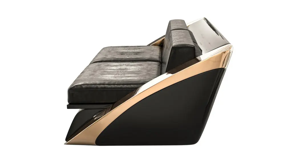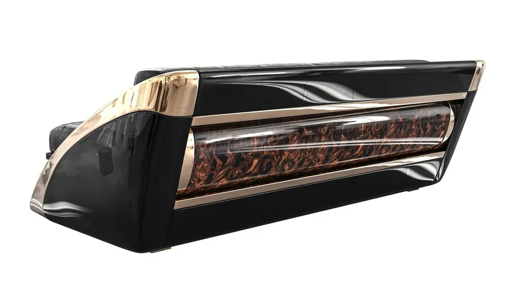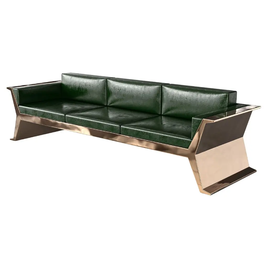 "Galata" Sofa With Bronze, Stainless Steel, Burl Walnut. Hand Crafted, Istanbul