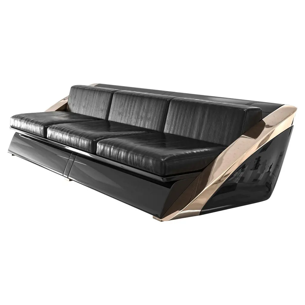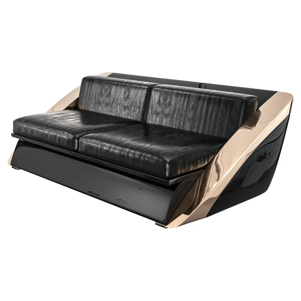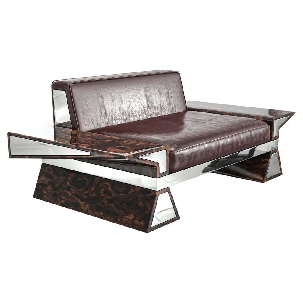 "Galata" Sofa with Bronze, Stainless Steel, Burl Walnut. Hand Crafted, IstanbulDesigned by Hasan Samet Bizimyer.Design, Art, Innovation.Bizimyer Furniture Presents.Bizimyer Art / Design.The world needs icons. Those exceptional few that stand clear of the rest. For these individuals who inspire greatness, only the purest expression of Bizimyer Furniture will do. An icon like no other.Unparalleled elegance, beauty and presence.The purest of retreats. The most luxurious touches abound.The world’s finest A grade hides. Hand-crafted wood veneers. Distinguished people is cocooned by the finest materials and impeccable workmanship. This is a truly unique space, defined by unparalleled comfort.Refined design heritage. This work of art will add value to your life with the precious handwork of Istanbul's best masters."Bizimyer Furniture" is a "Bizimyer Art / Design" company. The design company was founded in 2006 by Hasan Samet Bizimyer.Hasan Samet Bizimyer focused on innovative designs and brought them to life.Now, via 1stDibs, for dear art lovers, it offers carefully crafted timeless and exclusive design furniture.Design and Production by Hasan Samet Bizimyer.