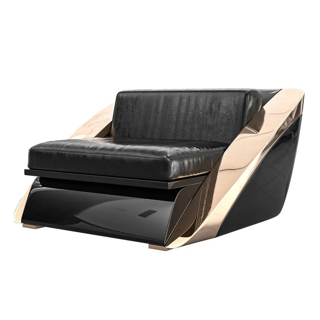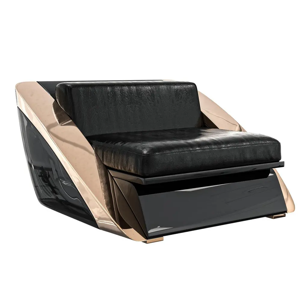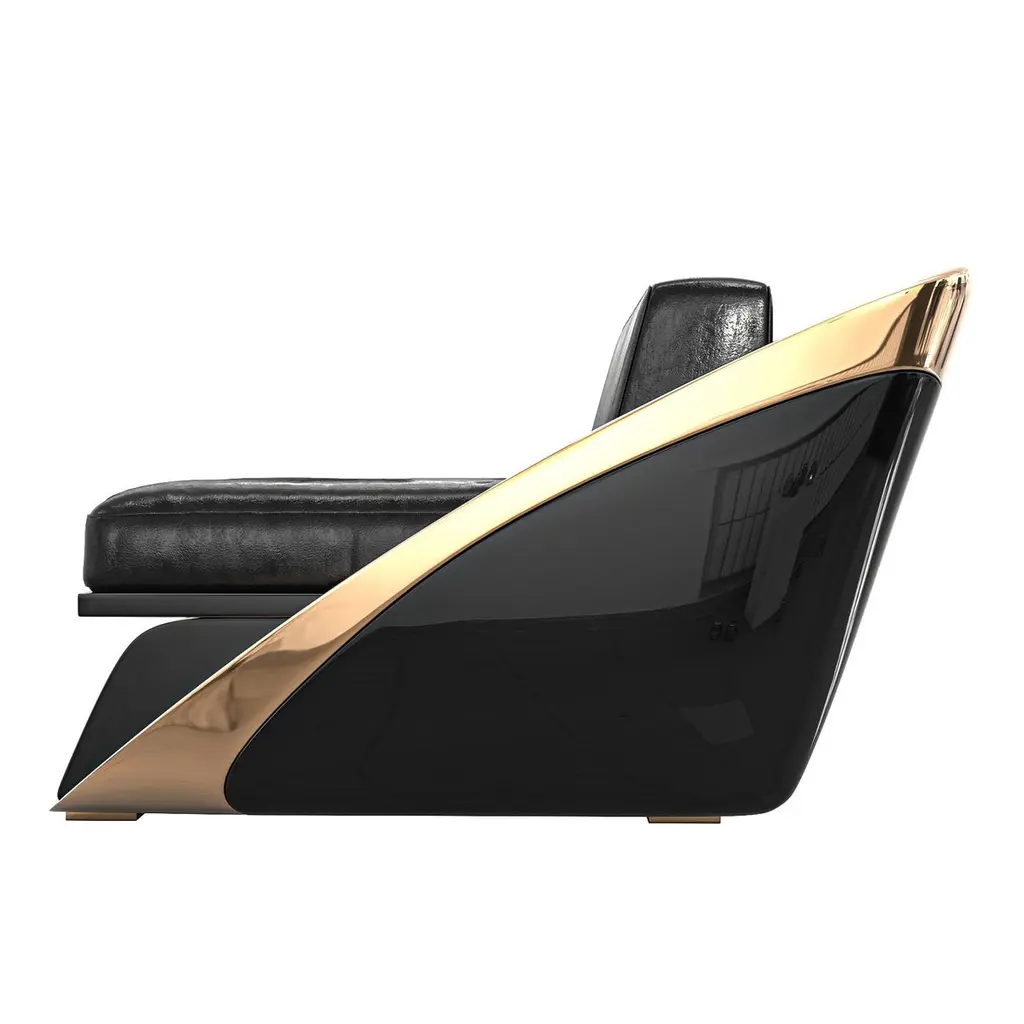 "Galata" Sofa With Bronze, Stainless Steel, Burl Walnut. Hand Crafted, Istanbul