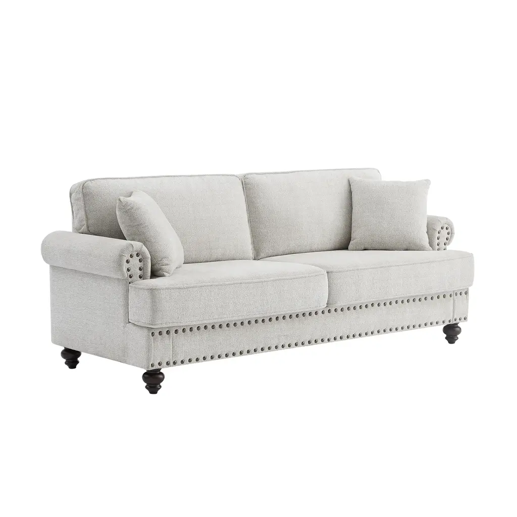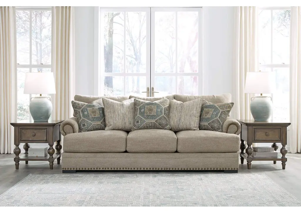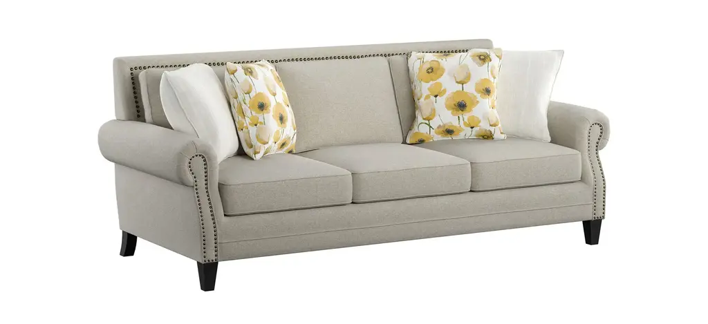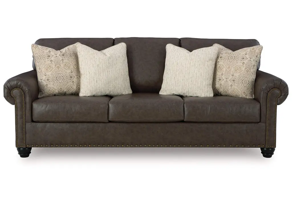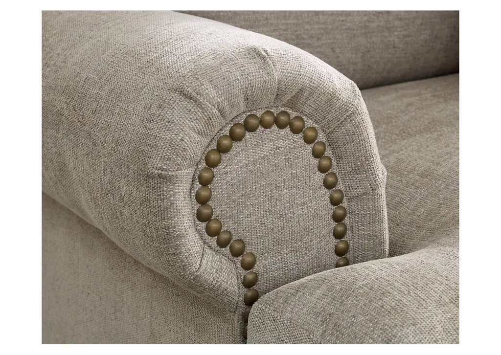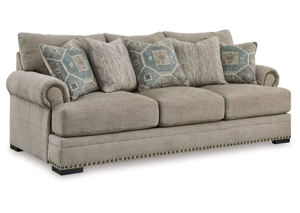 Looking to enhance your home's visual appeal? The Galemore sofa offers sophisticated design, comfort and elegance with tonal colors, roll arms and nailhead accents. Enjoy optimal coziness as you nestle into luxurious soft upholstery and feather-blend cushions. Perfect for modern spaces, it's just the spot to sit back and relax in style. Weight 208.000 lbs. (93.6kgs.)