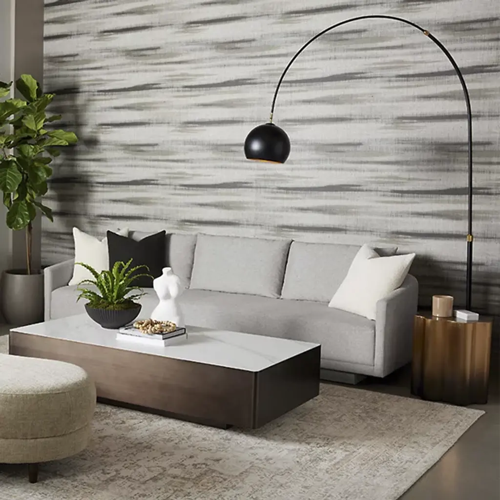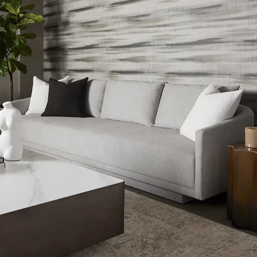 The Gannon Sofa from Sunpan brings contemporary elegance to any living space. Designed by Kemhome, its soft curves and modern silhouette are fully upholstered in soft, strong Polyester fabric, offering both style and comfort. Set atop a durable wood frame and filled with high-quality polyurethane foam, the sofa's construction ensures lasting and long-lived support. The design is perfectly suited for contemporary or mid-century modern interiors, and its curving back and soft cushions add layered comfort to its surroundings.