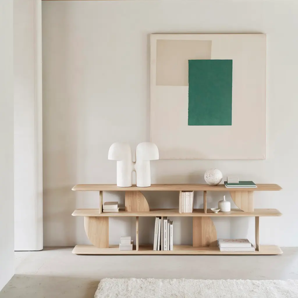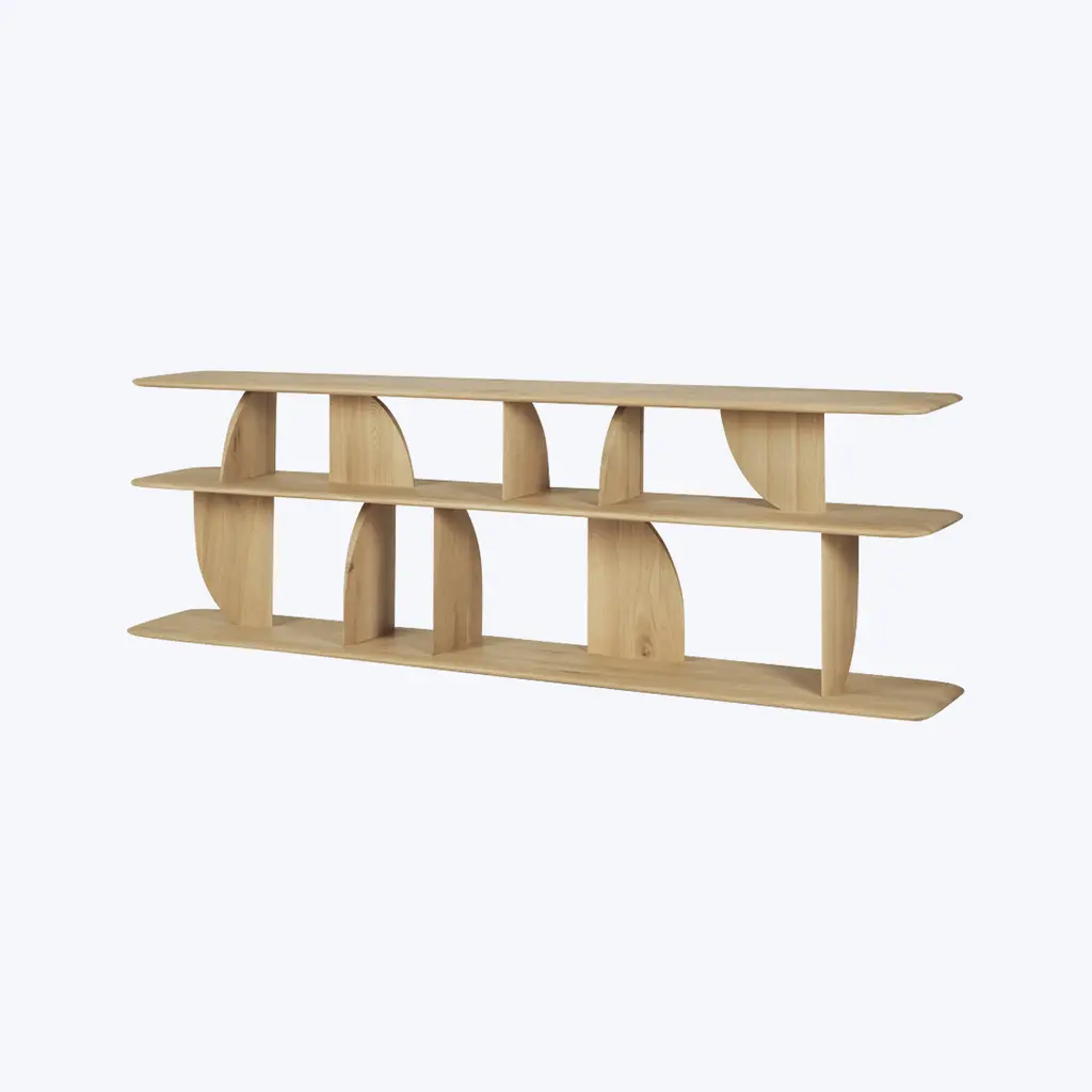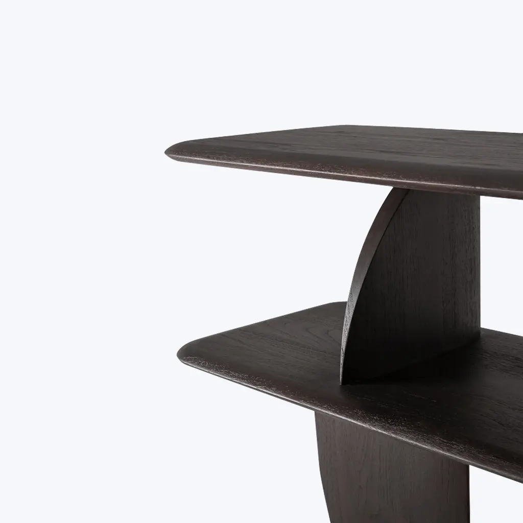 Merging visionary design with functional form, Ethnicraft’s Geometric Sofa Console makes an eye-catching addition to any living room or entryway. Designed by Alain van Havre, this striking console showcases the unexpected intersection of geometric shapes, creating playful contrasts of light and shadow at every angle. An elevated piece for cutting-edge interiors. Available in oak and brown teak.