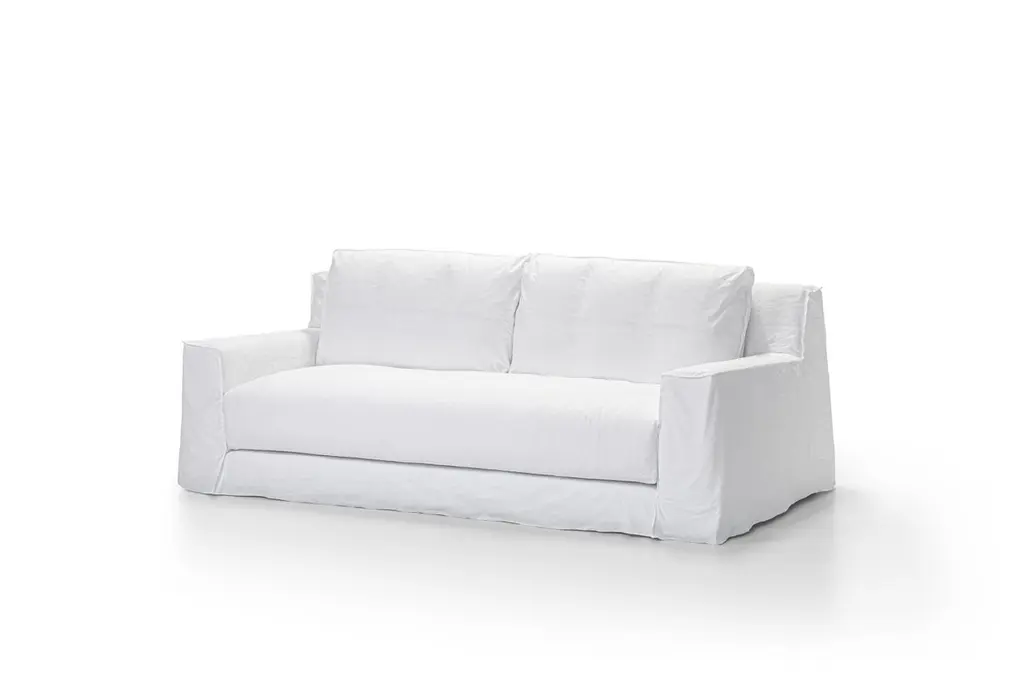 A proposal that tells a story of contemporary comfort, made special by the attention to detail, the quality of the materials and the uniqueness of the craftsmanship, such as the profile of the sofas underlined by the characteristic sew/cut seam which, like a light line drawn by hand, follows the essential geometries and soft lines of the collection. The solid wood structure with polyurethane foam shell is combined with large seat and back cushions made with a soft layer of channelled goose down, recovering the traditional technique of using pocket springs in the seat cushions for enhanced comfort. In all its versions, the covers of the LOLL collection are completely and easily removable. Sofa upholstered with polyurethane foams, seat and back cushions in dacron and down, removable covers.Additional Information:Material: Upholstery, foamUpholstery: White Linen Cat. CDimension: 238 W x 105 D x 78 H cmSeat height: 45 cmArmrest height: 59 cmAvailable in other upholstery options: Cat. I, Cat. H, Cat. B, Cat. D, Cat. EAvailable in other structural optionsQuick Ship: Loll 10 / 12 with removable cover in lino bianco. Available with shipping the week after the order receipt, upon confirmation of availability.