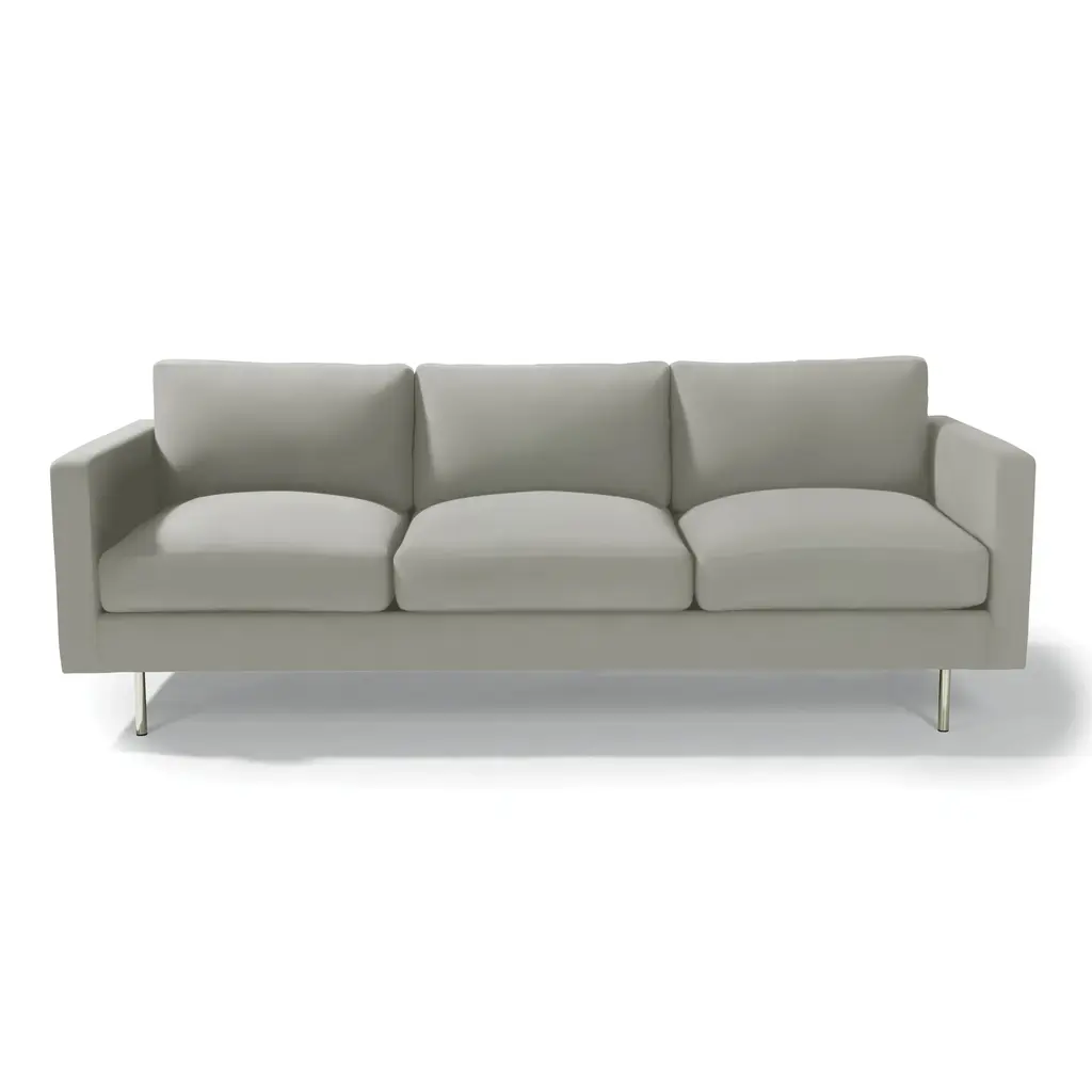 Experience the timeless elegance and sophistication of the Get Down Sofa from Thayer Coggin. Originally designed by Milo Baughman in 1964, this mid-century modern icon exudes luxury and style, making it the perfect addition to any space. Perfectly padded and expertly tailored, this sumptuous sofa is ready to support all kinds of entertainment and relaxation activities. Highlights