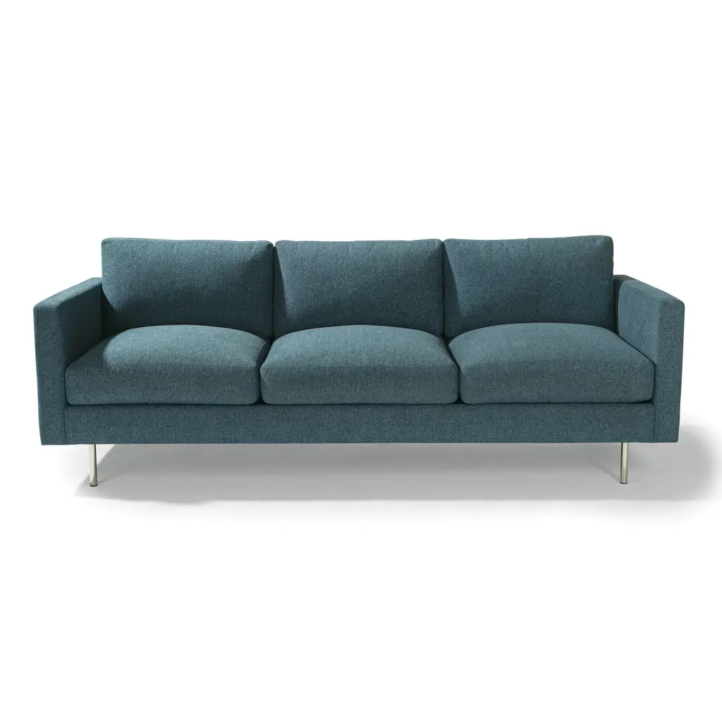 Experience the timeless elegance and sophistication of the Get Down Sofa from Thayer Coggin. Originally designed by Milo Baughman in 1964, this mid-century modern icon exudes luxury and style, making it the perfect addition to any space. Perfectly padded and expertly tailored, this sumptuous sofa is ready to support all kinds of entertainment and relaxation activities. Highlights