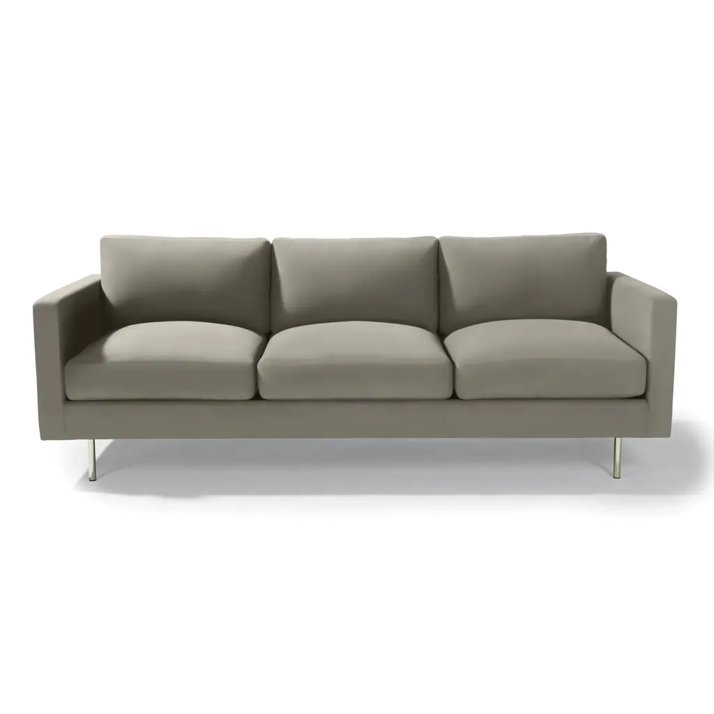 Experience the timeless elegance and sophistication of the Get Down Sofa from Thayer Coggin. Originally designed by Milo Baughman in 1964, this mid-century modern icon exudes luxury and style, making it the perfect addition to any space. Perfectly padded and expertly tailored, this sumptuous sofa is ready to support all kinds of entertainment and relaxation activities. Highlights