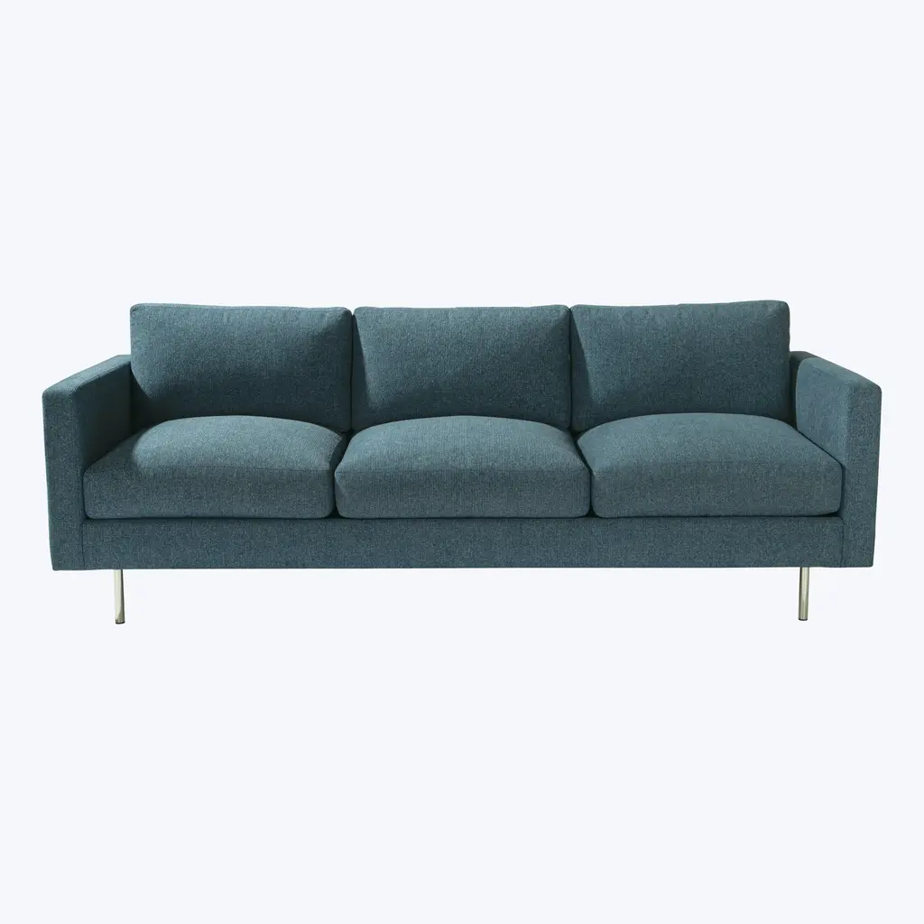 Originally designed in 1964 by the renowned Milo Baughman, the Get Down Sofa stands as a timeless representation of mid-century modern design. A hallmark of sophistication and practicality, this iconic piece blends clean lines, luxurious comfort, and enduring craftsmanship, making it a statement of style for any living space. The Get Down Sofa is defined by its sleek stainless steel legs, which provide a sturdy foundation while maintaining a minimalist aesthetic. This structural integrity is paired with a refined silhouette, creating a design that feels both timeless and contemporary. Whether placed in a modern loft, a classic family room, or a stylish office, this sofa elevates the ambiance of any space it inhabits. What makes the Get Down Sofa truly exceptional is its unparalleled comfort. The poly-blend down seat cushions offer an ideal balance of support and softness, designed for hours of relaxation. Complementing the seats, the fiber-down back cushions provide a cozy yet tailored feel, ensuring that this sofa doesn’t just look good—it feels good too. Whether you're hosting a gathering, enjoying a quiet evening, or indulging in a mid-afternoon nap, the Get Down Sofa delivers comfort without compromise. This design is more than just a sofa; it’s a piece of design history. Milo Baughman’s vision for modern furniture was rooted in combining practicality with elegance, and the Get Down Sofa is a perfect embodiment of this philosophy. Its clean, geometric lines and luxurious materials make it a standout addition to any home, reflecting a timeless aesthetic that transcends trends. The Get Down Sofa is more than a piece of furniture—it’s an icon of modern design, combining timeless elegance with everyday comfort for a truly remarkable addition to your home.
