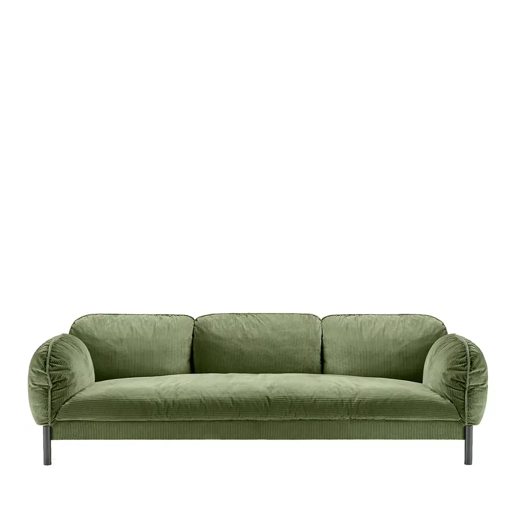 Ghidini 1961 Tarantino 3-Seat Sofa In Green Cord Fabric By L. Bozzoli