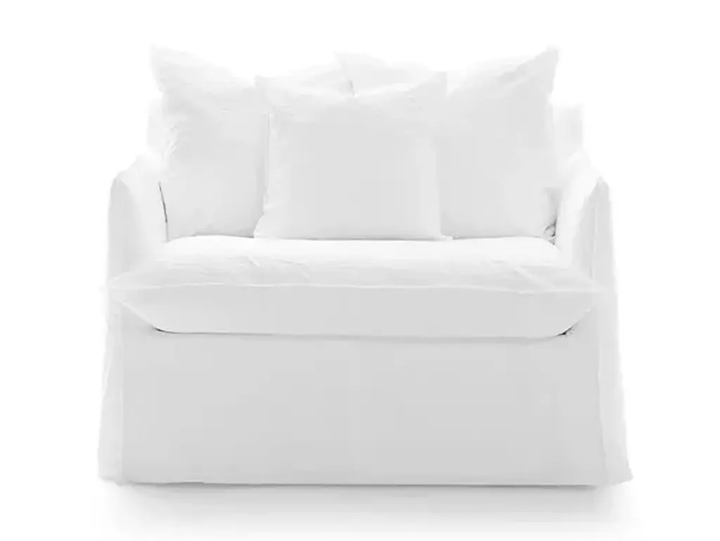 Presented by Gervasoni and crafted in Italy, the Ghost Out 12 Upholstered Outdoor Sofa is a design by the renowned Paola Navona. Showcasing exquisite Italian luxury with a contemporary flair, the eye follows a flowing arrangement of sun-resistant upholstery, with distinct contours along the silhouette that contribute to its dimensional and textured appearance. The applied foam filling is both comfortable and water resistant, while loose cushions provide ample options for relaxed lounging.