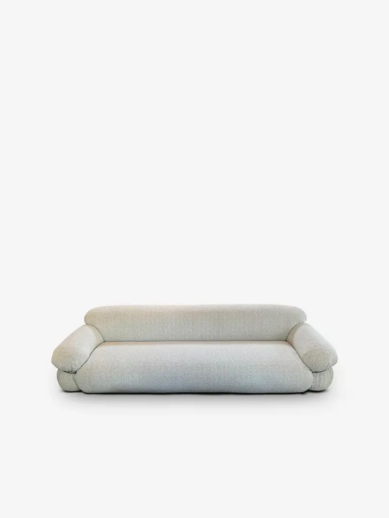 The Sesann sofa is a masterpiece of modern style and comfortable elegance. It features a tubular metal frame that accentuates and shapes the plush cushions forming a timeless silhouette. Designed by architect and designer Gianfranco Frattini in 1970 and produced by Tacchini since 2015.Tacchini celebrates the Italian crafting tradition with the quality of its materials and attention to detail in every step of the production process, while also being deeply involved in environmental sustainability.