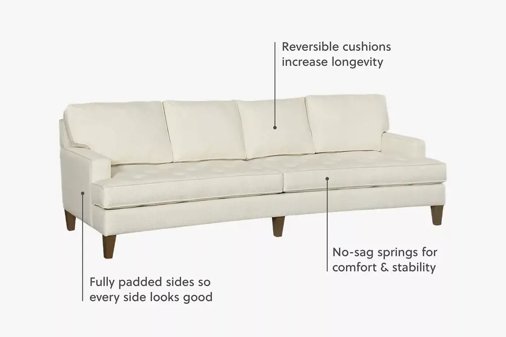Our Gianna conversation sofa is a classic beauty with a twist. This chic piece boasts a Lawson silhouette, curved frame and button-tufted, neutral upholstery. High-density reversible cushions provide ease and long-lasting support. Need a little extra? The classic 83-inch conversation sofa is also available in 89 and 103-inch styles.
