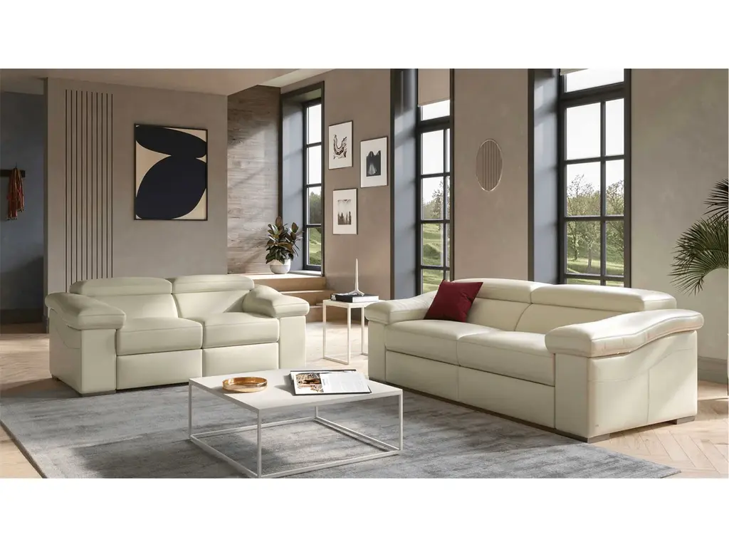 Introducing Gioia, the luxurious motion sofa from Natuzzi. Upholstered in top-grain leather, this sofa is designed for ultimate comfort and style. The plush seat and back cushions are supported by a durable frame, making it perfect for relaxing after a long day. Add Gioia to your living room for a touch of elegance.