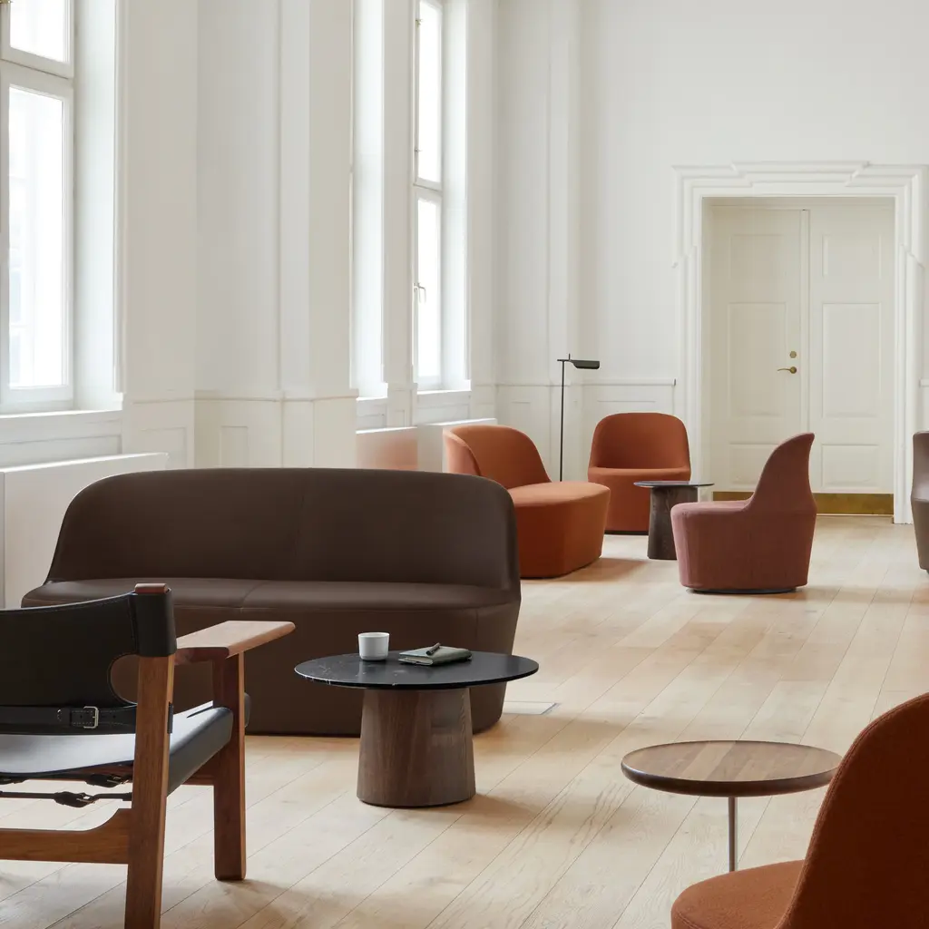 A legless silhouette and sculpted contours give the Gomo 2-Seater Sofa its distinctive presence. Designed by Hugo Passos—a Portuguese-born, Copenhagen-based designer known for focusing on the human scale of everyday objects—this sofa features a fully upholstered wooden shell made from molded plywood and furniture board, supported by webbing. Offered in a wide range of upholstery options, the Gomo 2-Seater Sofa can be tailored to suit various interiors.