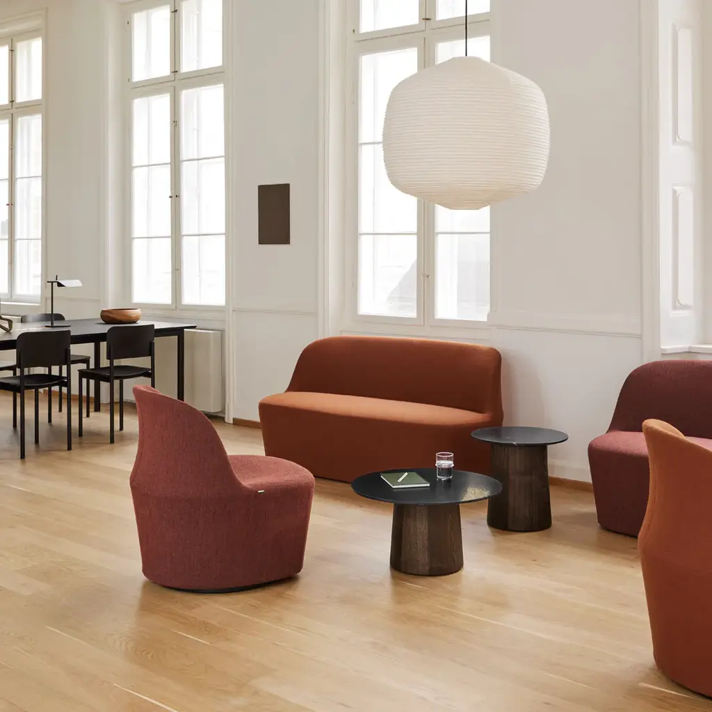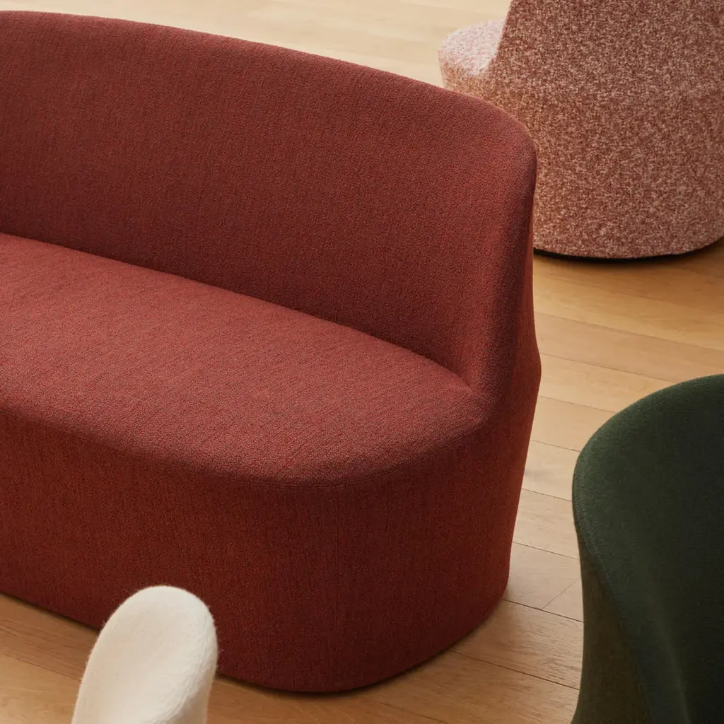 Gomo is a modern lounge collection with an intriguing design where specific curves and angles reveal a shape that seamlessly blends comfort and functionality. Designed by Hugo Passos, its small and versatile design makes it the perfect addition for both commercial spaces and contemporary homes. Designed for circularity with a removable cover in fabric, the Gomo Chair and Sofa meet the demands for flexibility and sustainability in the workplace today.
