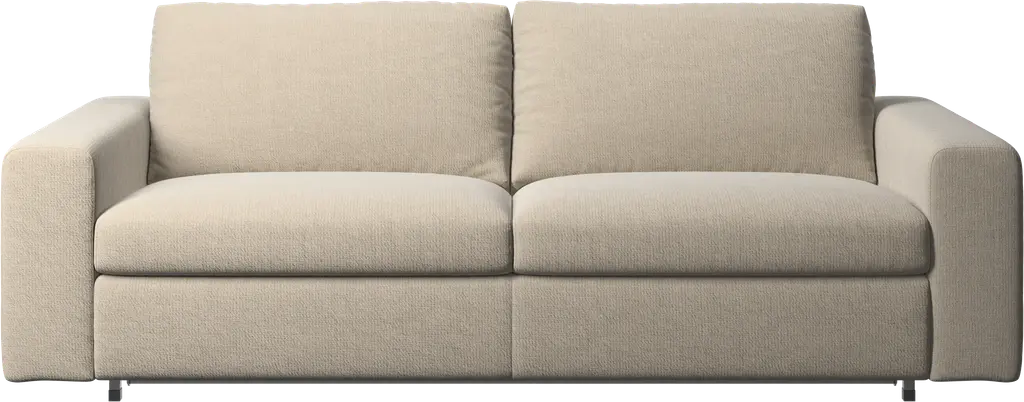 A contemporary take on the physics of comfort, the GONNA sofa plays with the combination of leather and fabric making it an elegant, yet cozy place to relax. The fluffy upholstery gives comfort and usability to this piece whereas the application of fine leather in the arm and foot area provide an easy-care surface in the exposed parts of the sofa. With its clean fluent shape, this sofa lets its luxurious materials do all the talking. As shown frame: leather DFLflorida2190. Seat: fabric TXT1053598. Metal: Inox Lucido.
