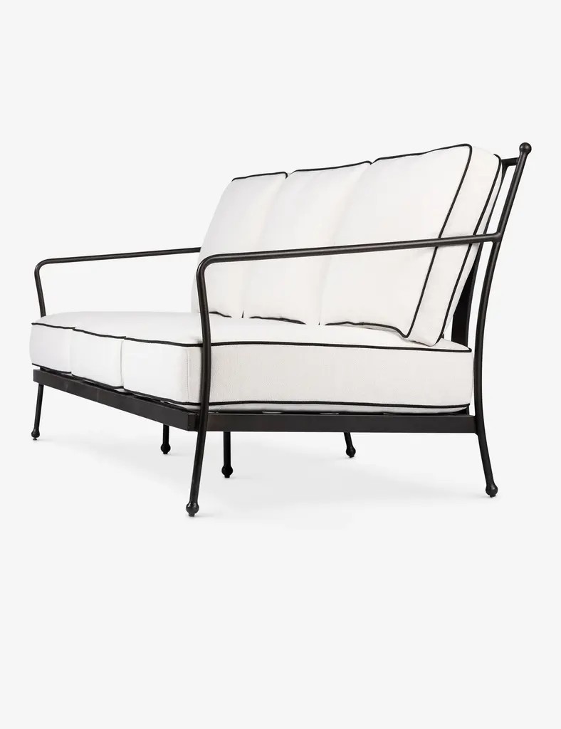 The Gracen sofa brings a clean shape and soft comfort to your outdoor lounge. Its slender metal frame and vertical slats style a tailored silhouette, while subtle finials add French Deco charm. This outdoor sofa creates a refined focal point for an outdoor seating group.
