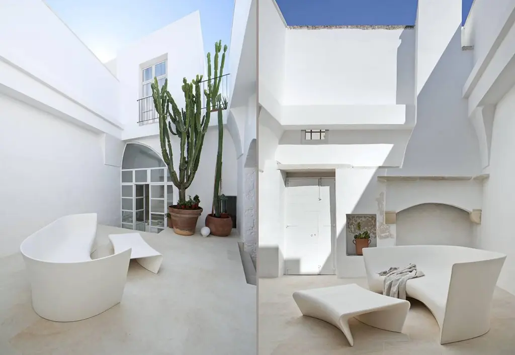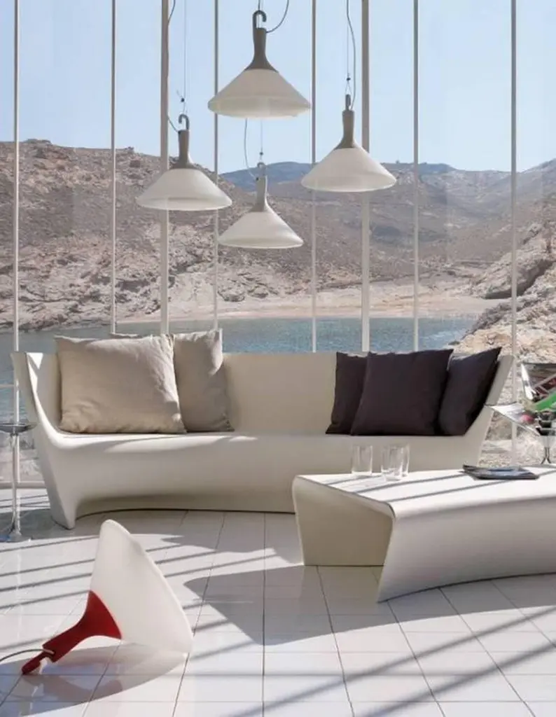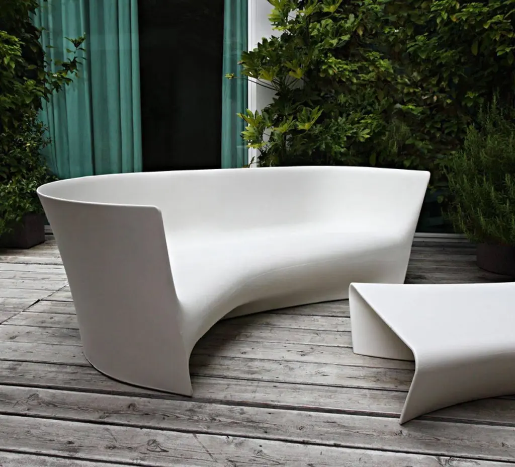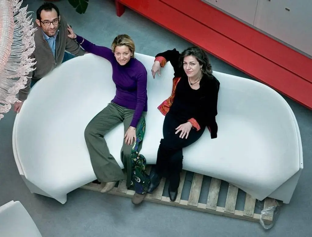 "Grand Plie'" is a white or light grey polyethylene monobloc iconic sofa, designed by Ludovica e Roberto Palomba and manufactured by Driade. White version only is available in quick ship.Indoor and outdoor use.DIMENSIONS:D. 57", W. 95.2", H. 32.2", Seat H. 15.7"An outdoor sofa designed for the old and very noble art of conversation. Everyone can find his own ideal depth of seating position and posture on this sofa: more composed or more gently relaxed, depending on mood or circumstances of the day.Ludovica e Roberto Palomba wanted Grand Plié to open up like an embrace, to seat up to four people and then to accommodate Plié armchairs and Piaffé tables inside the projection of its curve, in order to create a sort of controlled space.LUDOVICA and ROBERTO PALOMBA, architects, work and live in Milan. They founded Palomba Serafini Associati in 1994. They received many international awards such as Compasso D'Oro, Elle Decoration International Design Award, Red Dot, Design Plus, Good Design Award, German Design Award.Ludovica and Roberto Palomba plan architectures and design exhibitions worldwide. They work and are art director for some of the most established brands such as Antolini, Bisazza, Boffi, Brix, Cappellini, Dornbracht, Driade, Elica, Elmar, Exteta, Fiam, Flaminia, Foscarini, KitchenAid, Kos, Laufen, Lema, Plank, Poltrona Frau, Rapsel, Redaelli, Salviati, Sawaya & Moroni, Samsung, Schiffini, Tubes, Valli&Valli, Viccarbe, When Objects Work, Zanotta, Zucchetti.