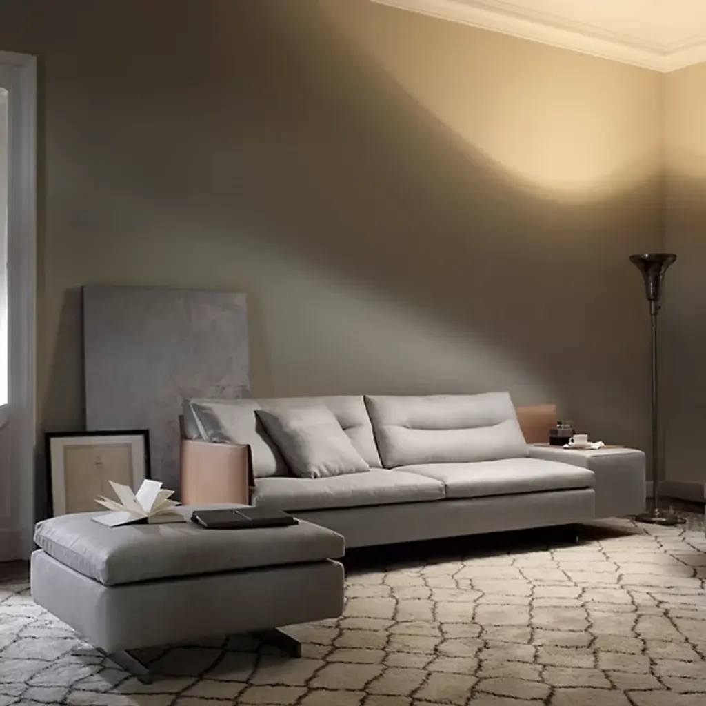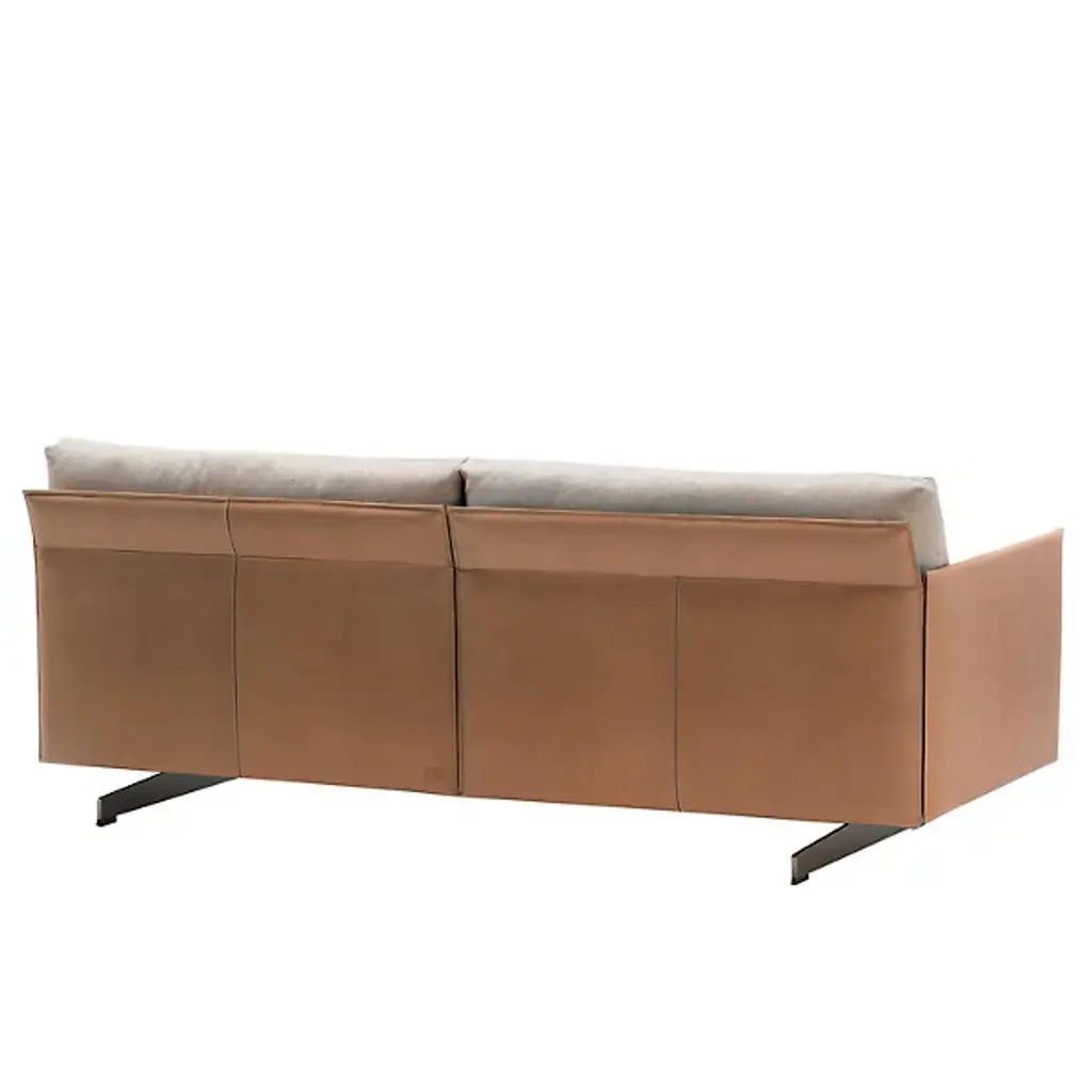 Bring the bespoke manufacture of saddlery indoors with the modular modern presence of the GranTorino 2 Seater Sofa from Poltrona Frau. Designed by Jean-Marie Massaud, its luxurious construction is expertly crafted, pairing hand-cut and painstakingly molded leather with inner upholstered seats. The slender metal supports hold birch plywood frames, echoing the seat’s geometry, while fabric-upholstered variable-density foam seating and back cushions offer lasting comfort escorted by hand-stitched rustic leather panels.