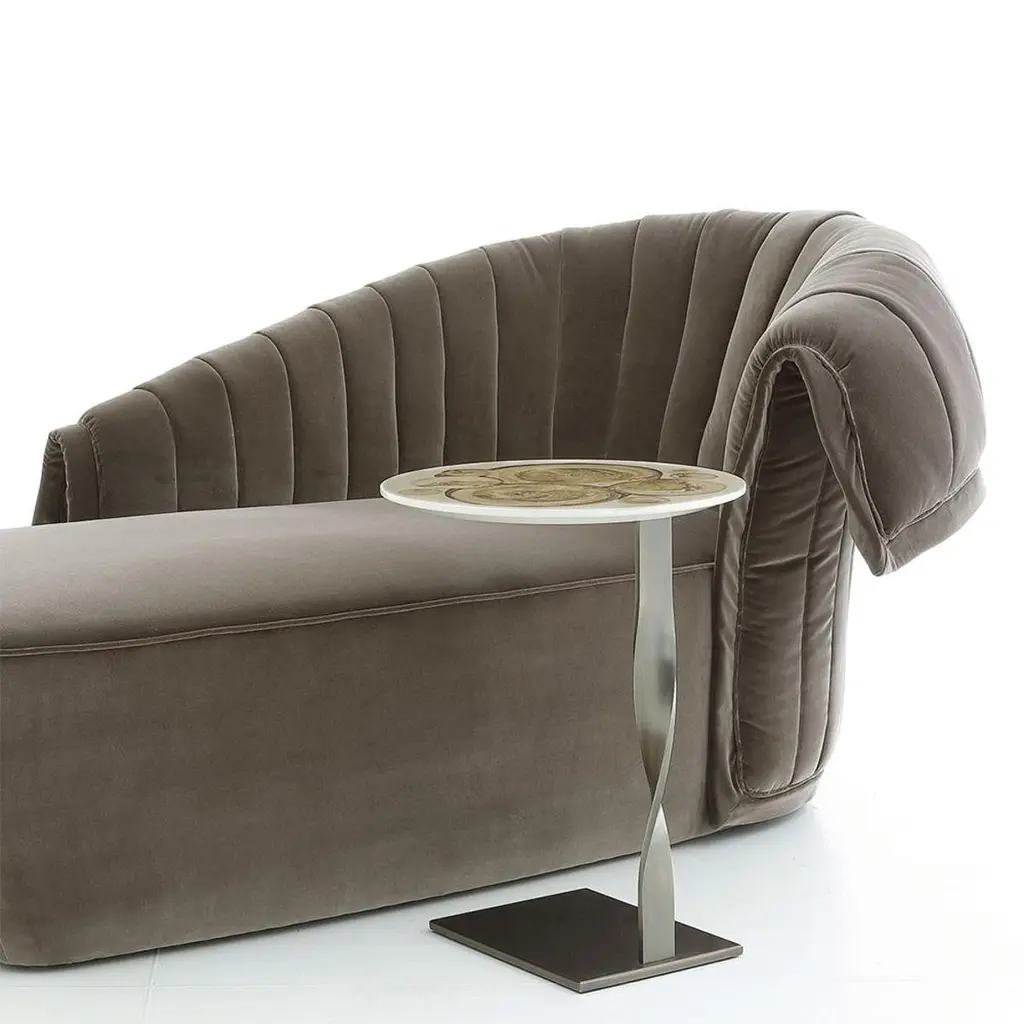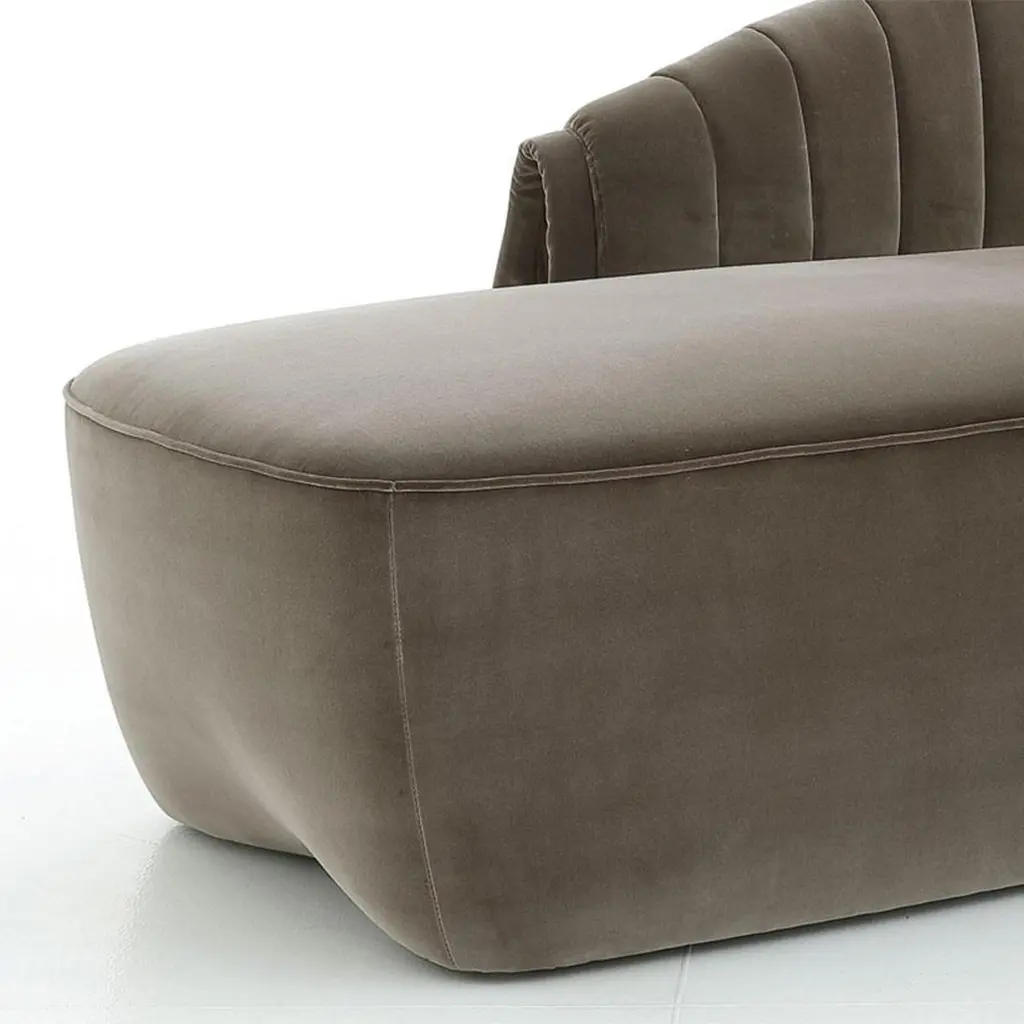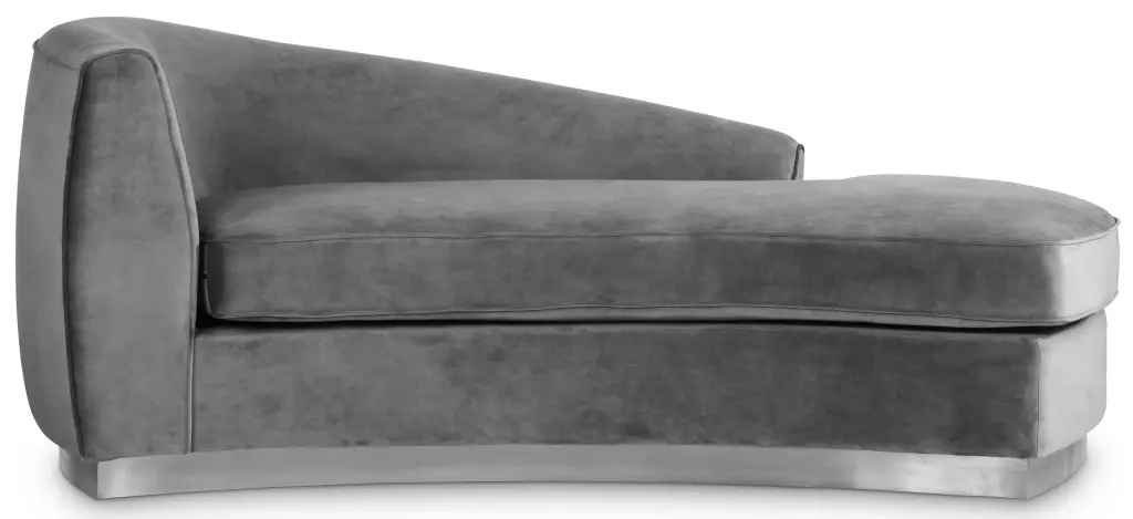 Chaise longue sofa great rest with solid wood structure,upholstered and covered with grey velvet fabric (Cat B.).Cushion in option.Available with other fabric finish and colors on request.