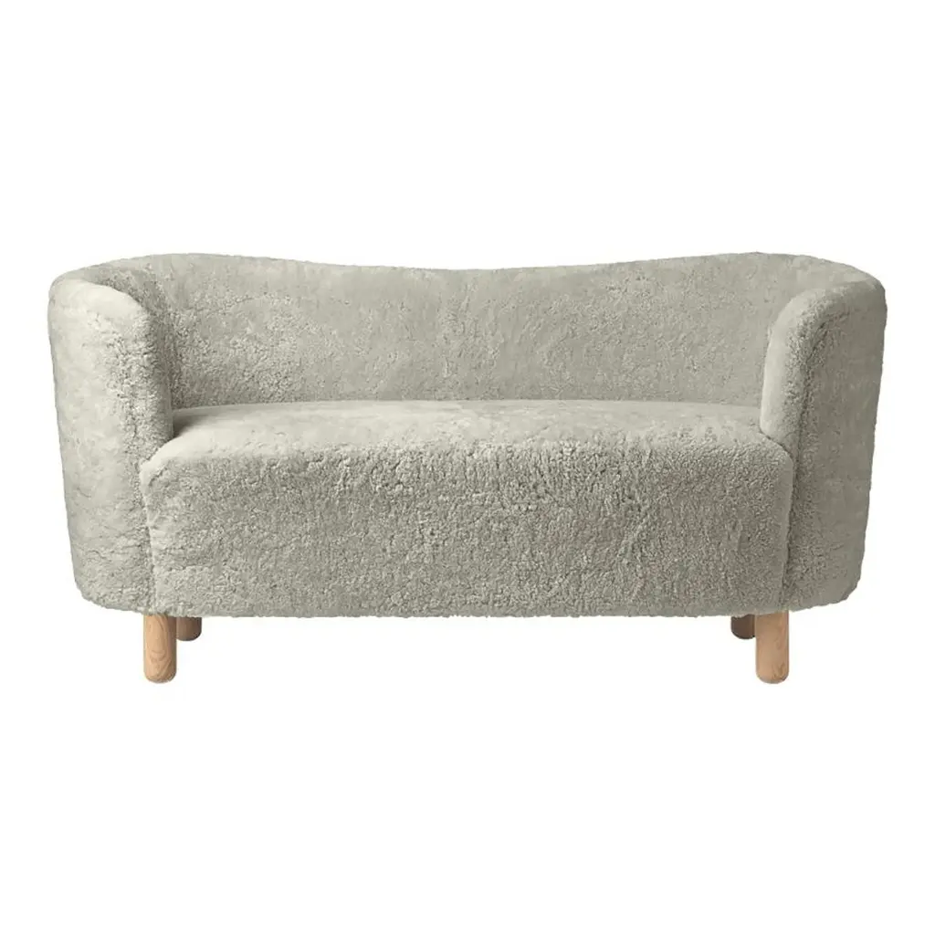 Green tea sheepskin and natural oak mingle sofa by LassenDimensions: W 154 x D 68 x H 74 cm Materials: Sheepskin, Oak.The Mingle sofa was designed in 1935 by architect Flemming Lassen (1902-1984) and was presented at The Copenhagen Cabinetmakers’ Guild Competition in the same year. It was subsequently praised for its qualities as a small but elegant sofa in the professional journal “The Architect”. Flemming Lassen loved to travel, and he was often inspired by his journeys throughout Europe. He was very taken with both Italy and France, and had a burning desire to tour those countries on his motorcycle. Flemming Lassen wanted to create a sofa made for conversation with a comfort that invited people to stay seated and talk together for long periods of time. The armrests were designed to encircle the sitters, generating intimacy and transforming the sofa into a cosy place to relax. Flemming Lassen took inspiration from both French elegance and modern Italian style, and transferred the trends and his own ideas to a small, upholstered sofa called Mingle.By Lassen is a Danish design brand focused on iconic designs created by Mogens and Flemming Lassen, founded by Lassens’ relatives in 2008. Brothers Mogens (1901-1987) and Flemming (1902-1984) Lassen are known as two of Denmark’s greatest architects and designers. Both were renowned pioneers of Danish functionalism and modernist architecture, honoured with numerous prestigious medals and awards. Headed by Mogens Lassen’s grandson Søren Lassen, by Lassen carries on the brothers’ design philosophy by manufacturing their iconic designs as well as products by other designers that complement the Lassen’s functionalist style. The company’s mission is to continue the tradition of timelessness, functionality and quality, and to introduce the Lassen’s design heritage to new generations.