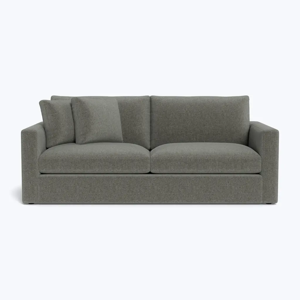 The Greenwich Sofa, exclusively available online at ABC Carpet & Home, embodies refined luxury and timeless design. Inspired by the sophisticated charm of upscale living, this 90-inch sofa offers the perfect balance of style, comfort, and sustainability, making it the ideal addition to any elegant home. With its sleek track arms, two-seat, two-back cushion design, and floating base, the Greenwich Sofa combines contemporary aesthetics with luxurious comfort, providing a seating experience that is both inviting and refined. Built with sustainability at its core, the Greenwich Sofa is constructed on a durable, eco-conscious Goodwood frame, ensuring a commitment to environmentally responsible design. The cushion cores are made from eco-friendly foam derived from sustainable, plant-based materials and are wrapped in a soft blend of feather and down. This thoughtful construction offers unparalleled comfort, balancing plush softness with firm support. Whether you're lounging after a long day or entertaining guests, the Greenwich Sofa delivers a level of comfort that invites you to sink in and relax. Designed for those who appreciate high-end craftsmanship, the Greenwich Sofa is proudly made in the USA and handcrafted to order. With over 80 customizable fabric options, this sofa can be tailored to suit your personal style and home’s aesthetic. Choose from rich jewel-tone velvets like Vance for a bold, statement piece, opt for durable performance fabrics that can withstand high-traffic areas, or select linen for a luxurious vibe. No matter your choice, each fabric option is carefully selected to ensure durability, style, and luxury. The attention to detail, from the eco-conscious materials to the superior comfort of the cushions, guarantees a seating experience that will exceed your expectations. With its 42-inch depth, this sofa provides ample space to stretch out and unwind, whether placed in a living room, family room, or den. Handcrafted and delivered to your home within 8-10 weeks, the Greenwich Sofa promises a seamless experience from start to finish. Its floating base and sleek design make it a statement piece in any room, offering a sophisticated and luxurious touch to your home. Whether you're creating a cozy retreat or adding a refined accent to your space, the Greenwich Sofa is the perfect blend of sustainability, comfort, and style.