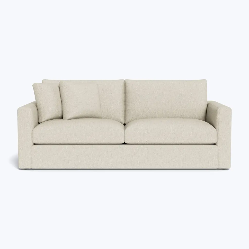 The Greenwich Sofa, exclusively available online at ABC Carpet & Home, embodies refined luxury and timeless design. Inspired by the sophisticated charm of upscale living, this 90-inch sofa offers the perfect balance of style, comfort, and sustainability, making it the ideal addition to any elegant home. With its sleek track arms, two-seat, two-back cushion design, and floating base, the Greenwich Sofa combines contemporary aesthetics with luxurious comfort, providing a seating experience that is both inviting and refined. Built with sustainability at its core, the Greenwich Sofa is constructed on a durable, eco-conscious Goodwood frame, ensuring a commitment to environmentally responsible design. The cushion cores are made from eco-friendly foam derived from sustainable, plant-based materials and are wrapped in a soft blend of feather and down. This thoughtful construction offers unparalleled comfort, balancing plush softness with firm support. Whether you're lounging after a long day or entertaining guests, the Greenwich Sofa delivers a level of comfort that invites you to sink in and relax. Designed for those who appreciate high-end craftsmanship, the Greenwich Sofa is proudly made in the USA and handcrafted to order. With over 80 customizable fabric options, this sofa can be tailored to suit your personal style and home’s aesthetic. Choose from rich jewel-tone velvets like Vance for a bold, statement piece, opt for durable performance fabrics that can withstand high-traffic areas, or select linen for a luxurious vibe. No matter your choice, each fabric option is carefully selected to ensure durability, style, and luxury. The attention to detail, from the eco-conscious materials to the superior comfort of the cushions, guarantees a seating experience that will exceed your expectations. With its 42-inch depth, this sofa provides ample space to stretch out and unwind, whether placed in a living room, family room, or den. Handcrafted and delivered to your home within 8-10 weeks, the Greenwich Sofa promises a seamless experience from start to finish. Its floating base and sleek design make it a statement piece in any room, offering a sophisticated and luxurious touch to your home. Whether you're creating a cozy retreat or adding a refined accent to your space, the Greenwich Sofa is the perfect blend of sustainability, comfort, and style.
