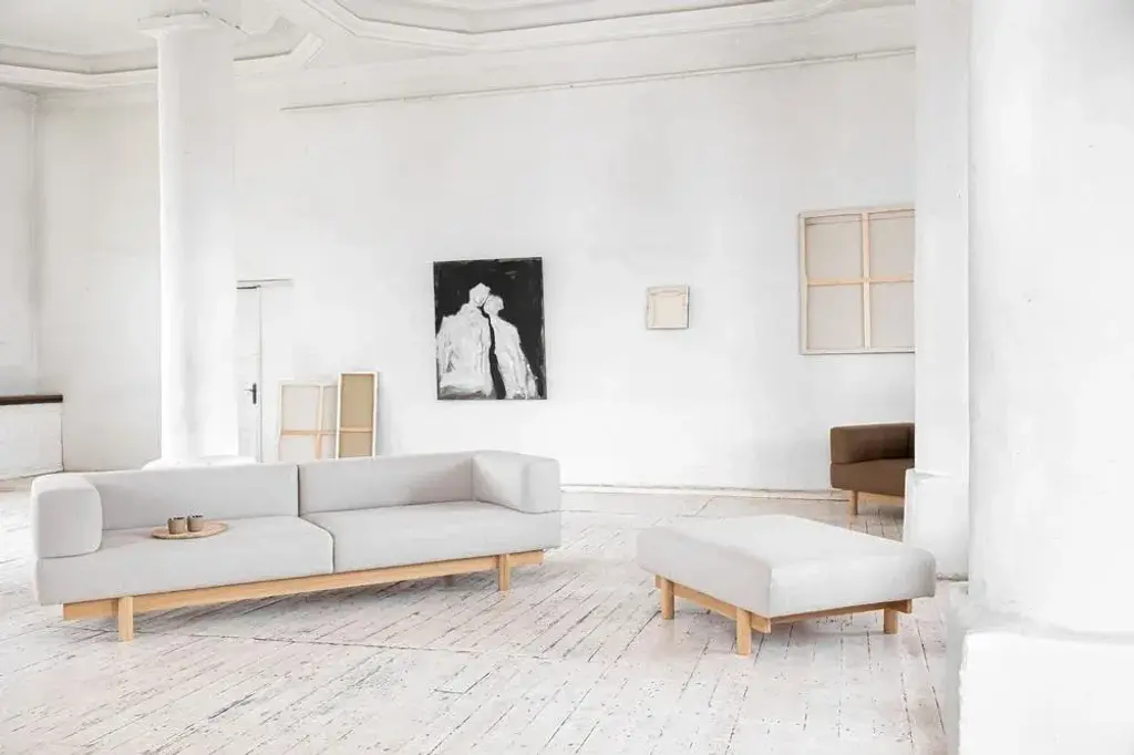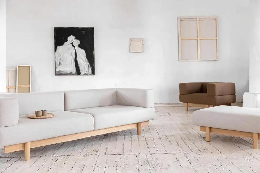 Introducing the Alchemist collection - a series of sophisticated sofas, armchairs and poufs, that exude timeless elegance. Melding modernist design with traditional Japanese structures, this collection is a masterpiece of balance and proportion, boasting clean lines that are both minimal and refined. Crafted with meticulous attention to detail, the soft pillows of the Alchemist are sculpted to perfection, seamlessly sitting on an oak-veneered frame. The structure of the sofa is characterized by sharp, well-defined lines that run along all sides, creating a welcoming and visually stunning piece from every angle. In any room it graces, the Alchemist's composed posture radiates a sense of calm and comfort, offering a perfect retreat for relaxation and rejuvenation. This collection is a true work of art, seamlessly blending style and comfort into a statement piece that will elevate any space. Labeled by Maker