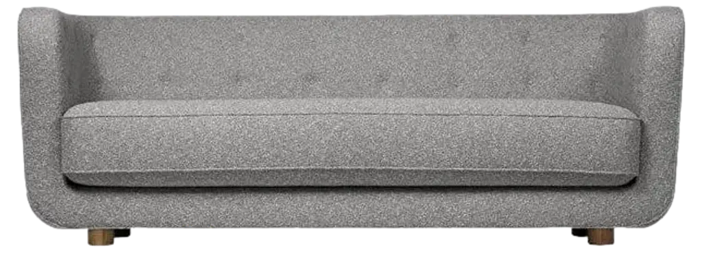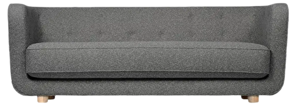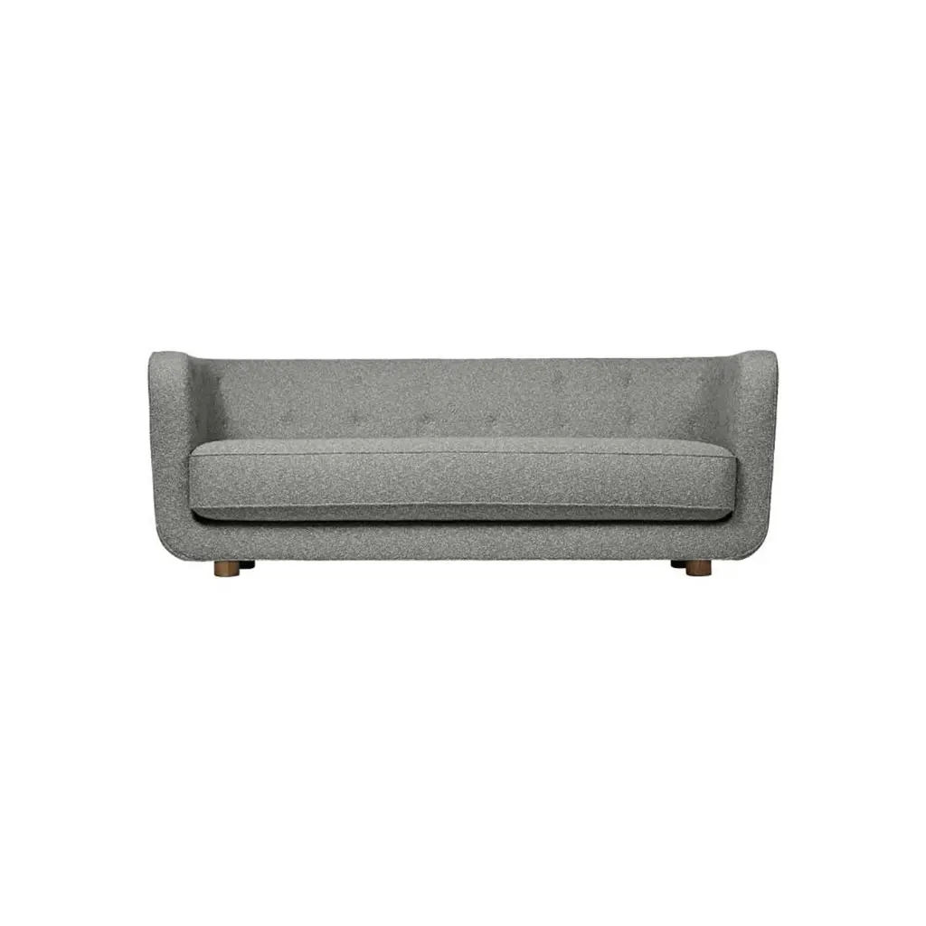 Grey and smoked oak sahco nara vilhelm sofa by LassenDimensions: W 217 x D 88 x H 80 cm Materials: textile, oak.Vilhelm is a beautiful padded three-seater sofa designed by Flemming Lassen in 1935. A sofa must be able to function in several ways. It should invite calm and contemplation. Create a private space you can hide in and at the same time invite to life and play. It must be able to withstand sitting on the backrest or on the armrests and then it must be able to stand in the middle of the room if you want to.In addition to being aesthetically beautiful and harmonious, the design makes absolute sense in relation to these parameters.By Lassen is a Danish design brand focused on iconic designs created by Mogens and Flemming Lassen, founded by Lassens’ relatives in 2008. Brothers Mogens (1901-1987) and Flemming (1902-1984) Lassen are known as two of Denmark’s greatest architects and designers. Both were renowned pioneers of Danish functionalism and modernist architecture, honoured with numerous prestigious medals and awards. Headed by Mogens Lassen’s grandson Søren Lassen, By Lassen carries on the brothers’ design philosophy by manufacturing their iconic designs as well as products by other designers that complement the Lassen’s functionalist style. The company’s mission is to continue the tradition of timelessness, functionality and quality, and to introduce the Lassen’s design heritage to new generations.