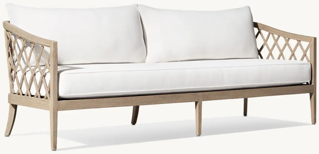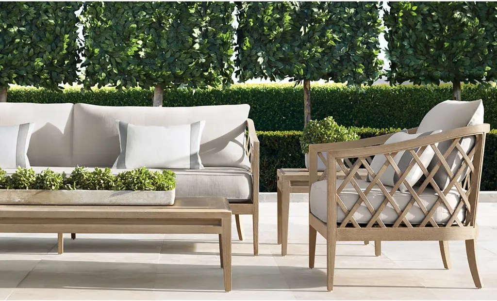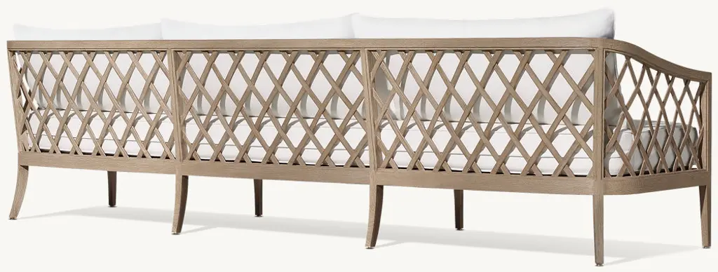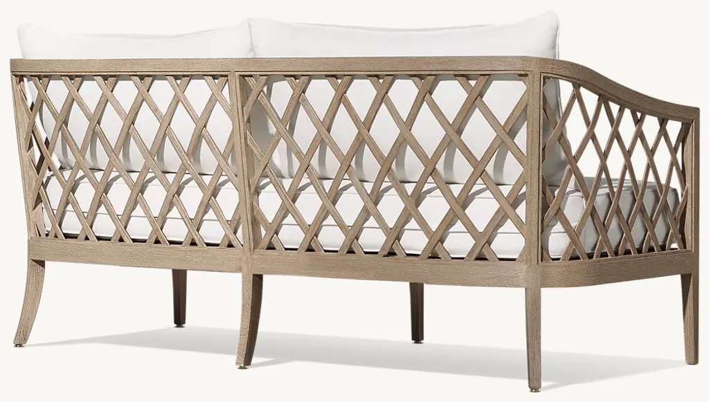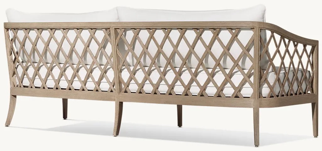 The timeless elegance of latticework – employed for centuries in European Neoclassical garden furniture and landscape architecture – is beautifully reinterpreted in this collection by Ann Marie Vering. Styled with gently sloped arms and tapered legs, the open frame lends a sense of lightness to the enduring construction. ALSO AVAILABLE IN ALUMINUM SHOP THE ENTIRE COLLECTION