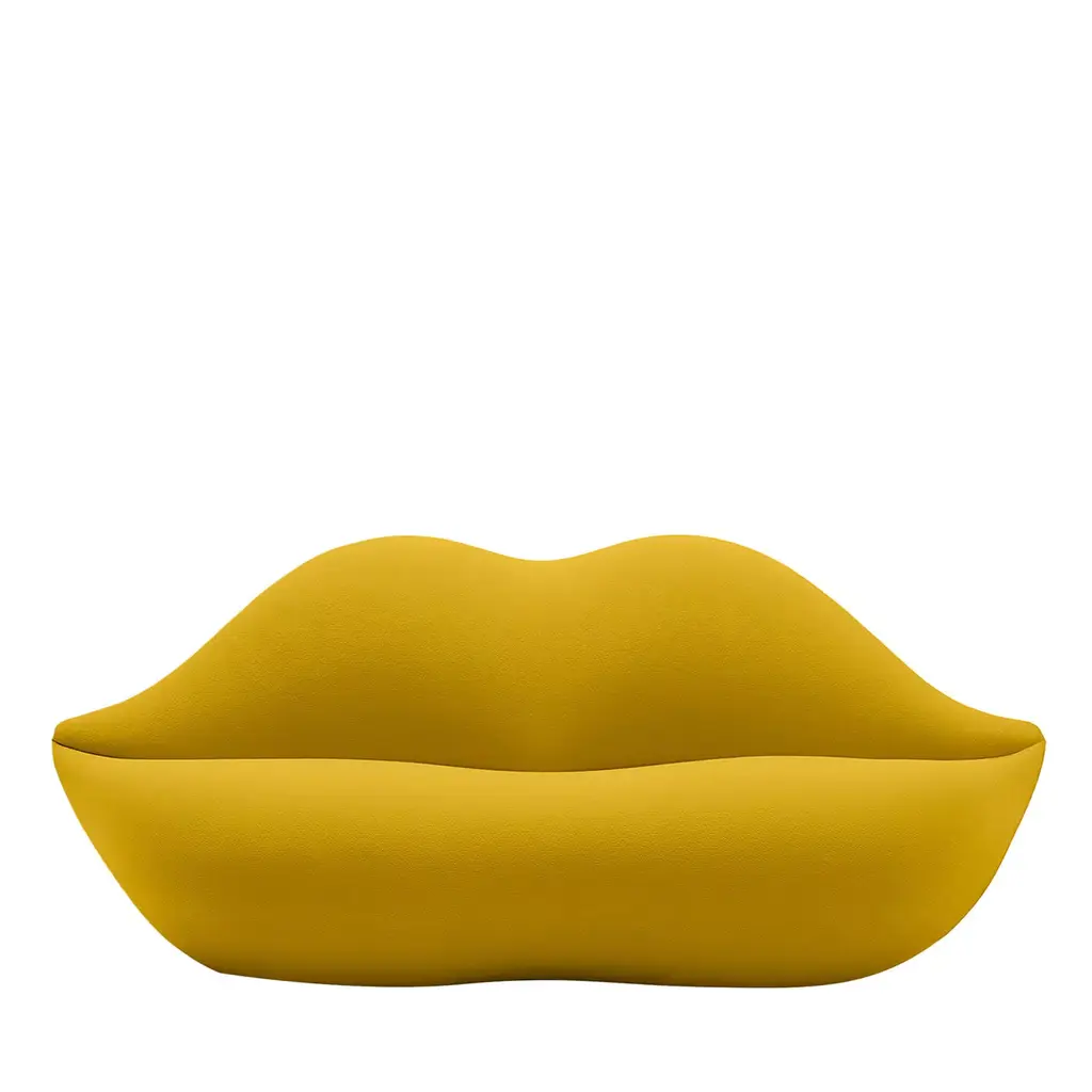 Bocca, the original 1970 lips-shaped couch is only Gufram’s. More than any other, this object of design represents the perfect abstraction of feminine beauty. It is no coincidence that it was photographed by important photographers such as David La Chapelle and Richard Avedon together with style icons, muses, as well as the most beautiful women in the world such as Marisa Berenson, Heidi Klum, Anne Hathaway and Sharon Stone. It is among Gufram’s best known products, and as a true diva it was the protagonist of more than a thousand editorials and featured on the covers and editorials of the main design and fashion magazines like Vogue, Harper’s Baazar, Elle and Vanity Fair just to name a few. This sensual couch, which is ideal for a tête-à-tête, has entered the collective imagination on par with Andy Warhol’s works, as well as other pop art masterpieces. Soft and welcoming thanks to its look and the soft polyurethane it is made of, the sexiest couch in the history of interior design can interpret the atmosphere of interior design with the most appropriate make-up. Exclusive and provocative when fire red, black with an oversize piercing that exalts its rock and transgressive soul, or produced in a precious golden version, it lends itself also to other alluring contemporary tones. Besides at the Louvre, the couch Bocca was on exhibit in the most important museums in the world, such as the Museum of Applied Art and Science in Sydney, the Design Museum in Monaco, and the MAK in Vienna.Material: Soft Polyurethane upholstered with fabric.