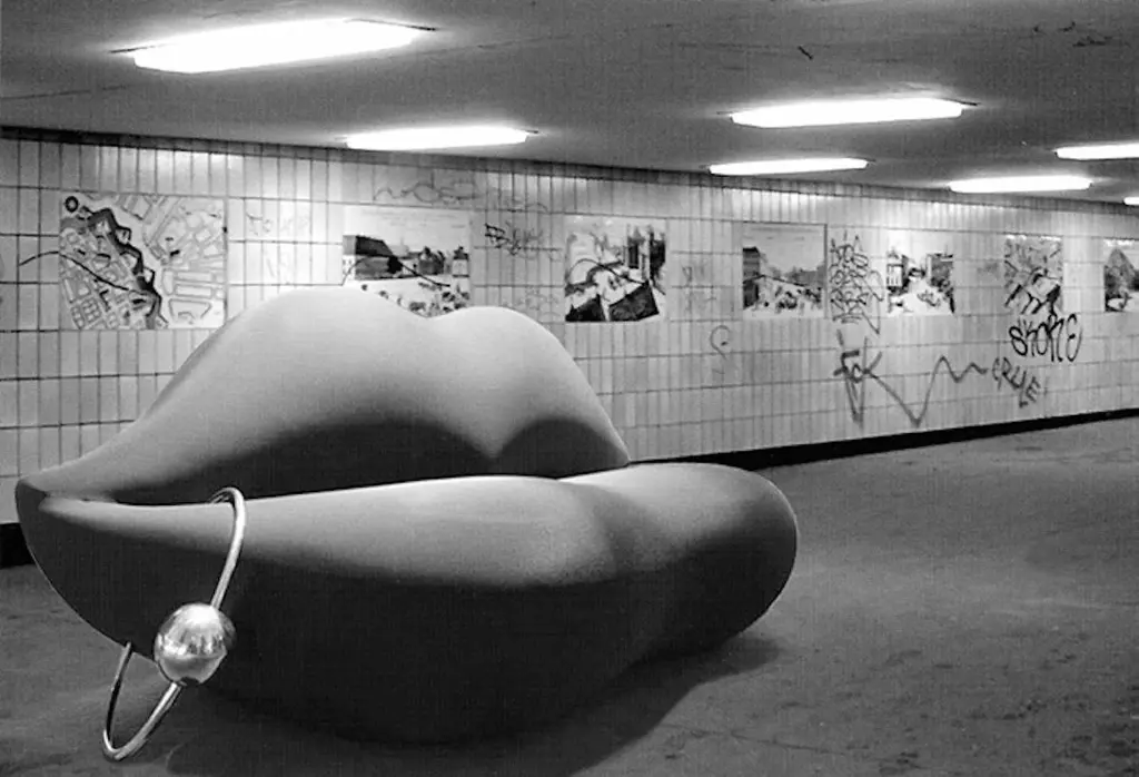 Gufram, Dark Lady Lip-Shaped Sofa With Removable Chromed Piercing By Studio 65