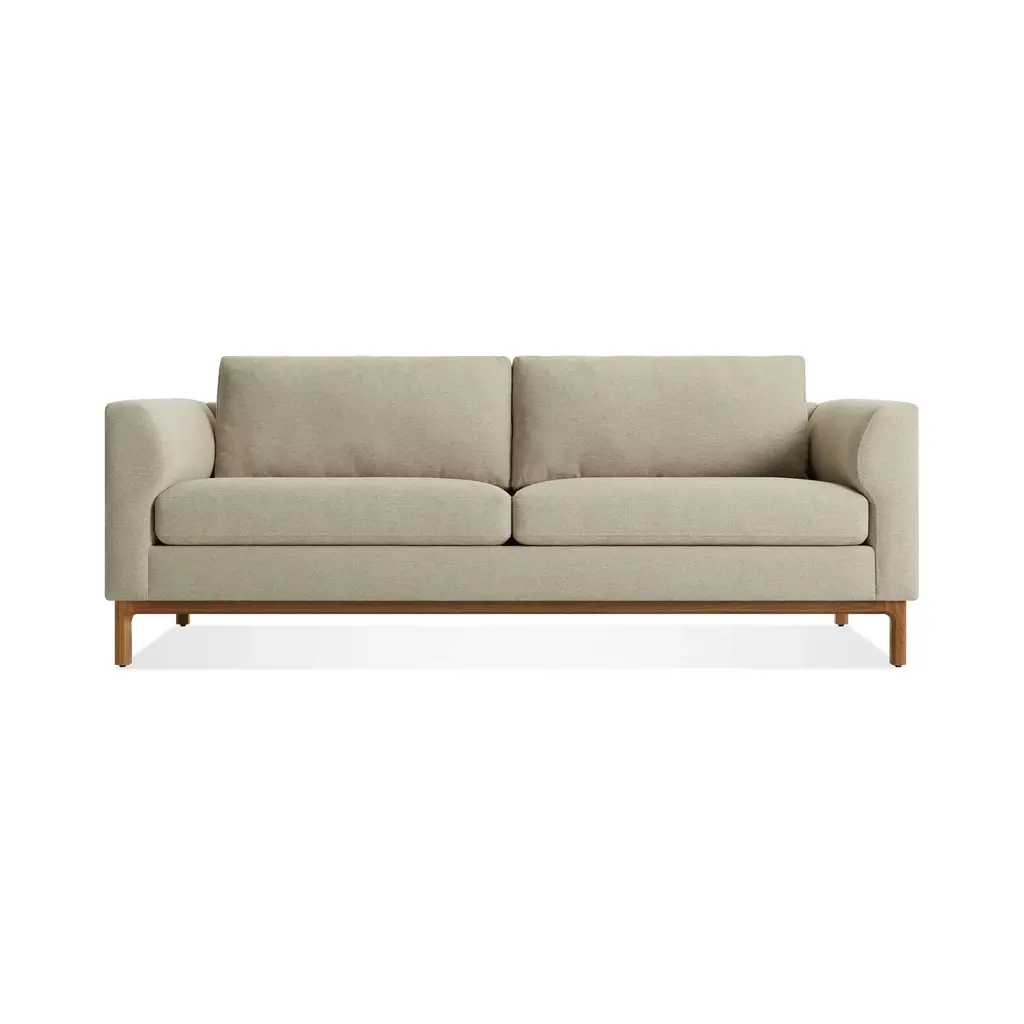 Experience unmatched comfort with the Guide Sofa from Blu Dot. This elegant piece offers a timeless sophistication with its low-profile wood base accentuating the soft upholstery, creating a captivating contrast. Cushions filled with the finest foam and springs sit deeply, providing a true sanctuary of relaxation. Highlights