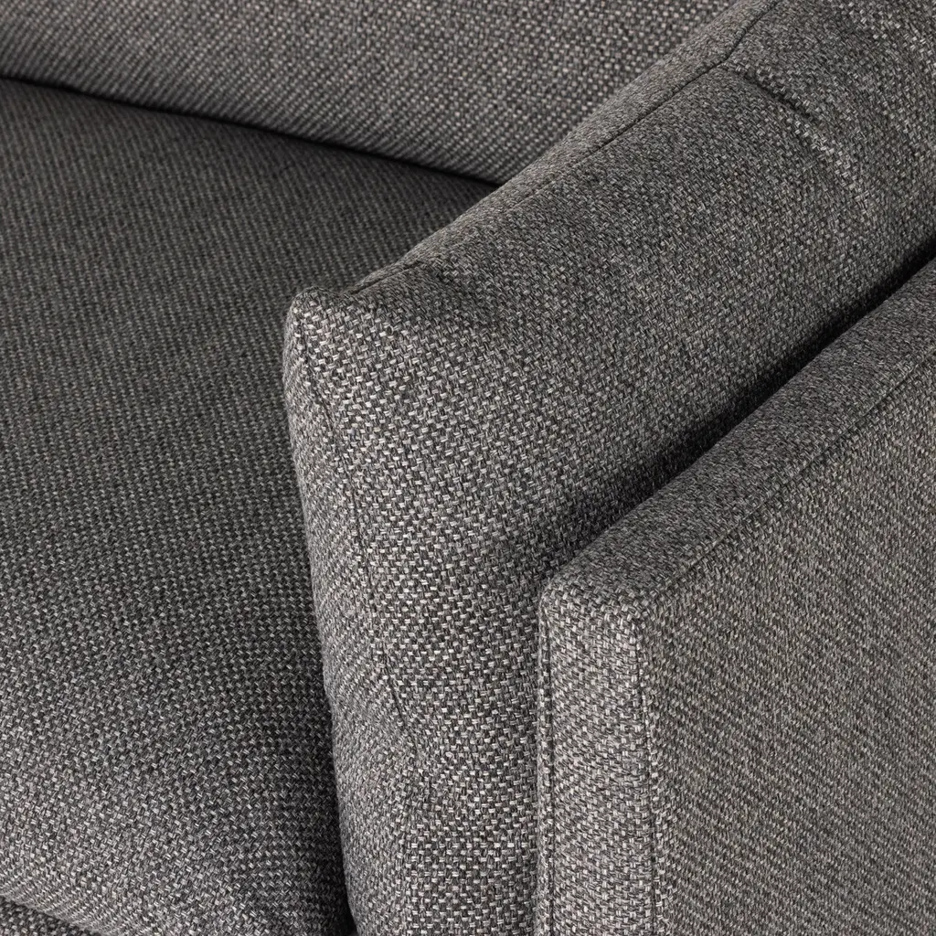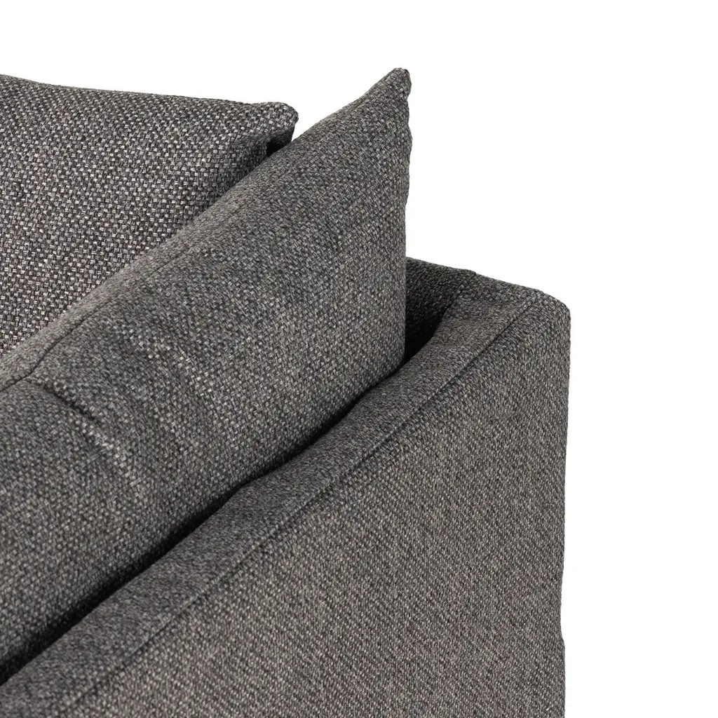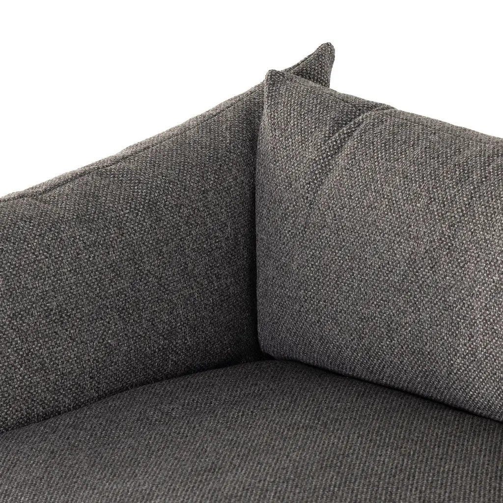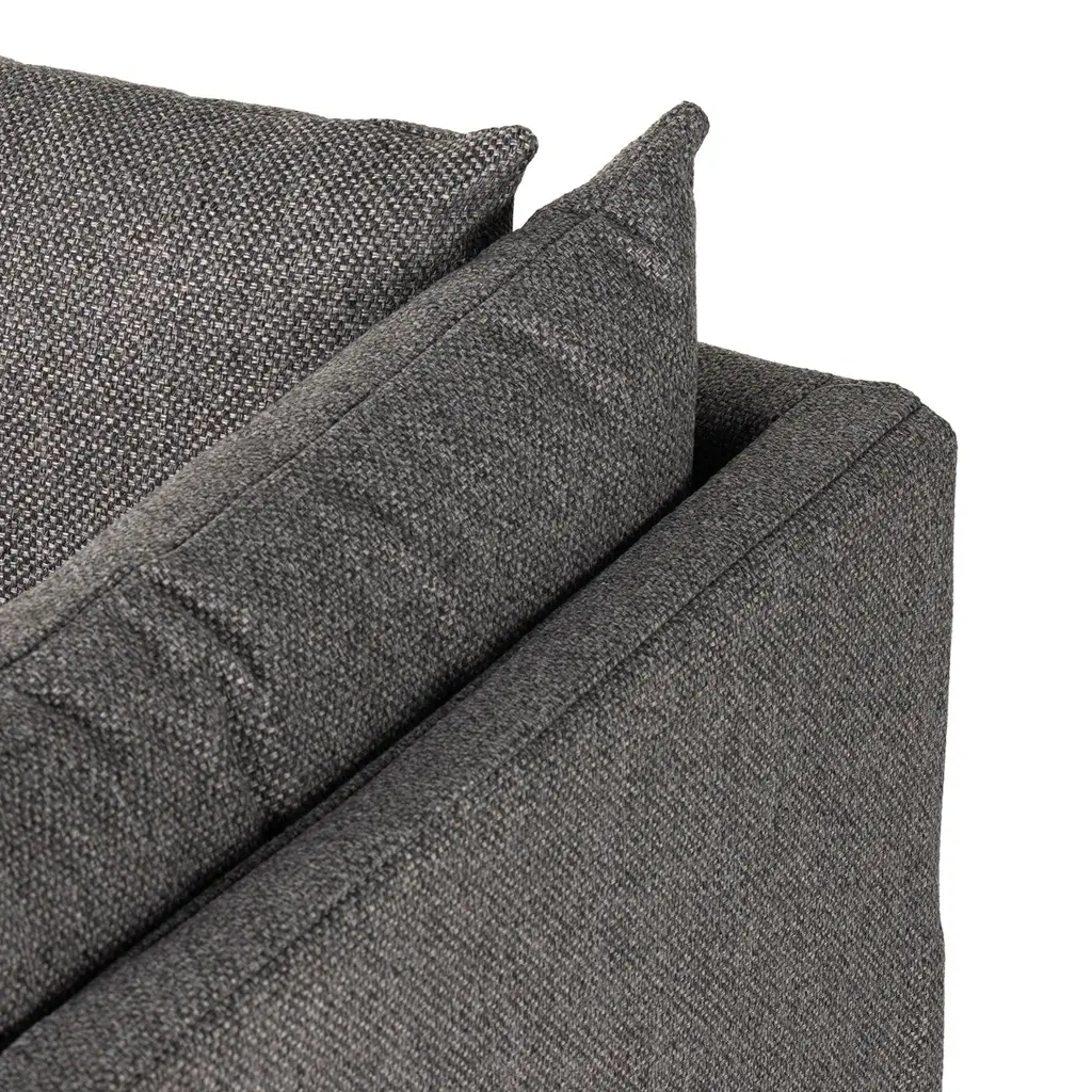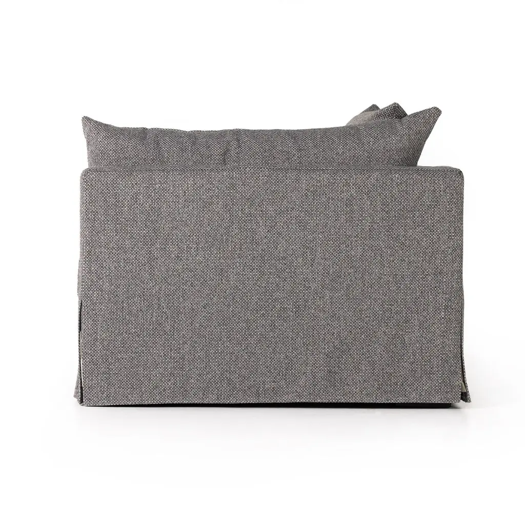 A loungey, slipcovered sofa, made for modern living. Shelter arms and pillow-inspired cushions are covered in textural fabric that's been mindfully made from landfill-diverted water bottles.