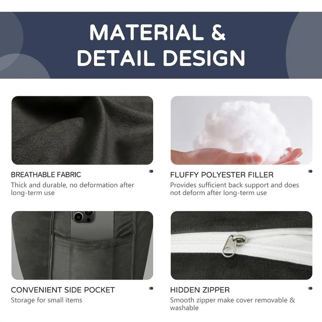 Elevate your relaxation with the Hachikiko Velvet Back Support Pillow, designed to blend comfort and functionality for your bed or couch. Crafted with luxurious velvet fabric and filled with high-quality polyester fiber, this reading pillow delivers exceptional support—perfect for lounging, reading, watching TV, or unwinding after a long day. Its ergonomic curved shape aligns with your body’s contours, offering targeted relief for your neck, shoulders, and back, while the 5-inch adjusted bottom width fits seamlessly on sofas or small beds without taking up extra space. Versatile and stylish, this back pillow works beautifully alone or paired with others to create a larger support cushion, adding a fresh touch to your bedroom or living room decor. The removable, machine-washable velvet cover (with a hidden zipper for a clean look) makes maintenance a breeze, and the built-in small pocket keeps remotes, phones, or pens within easy reach.