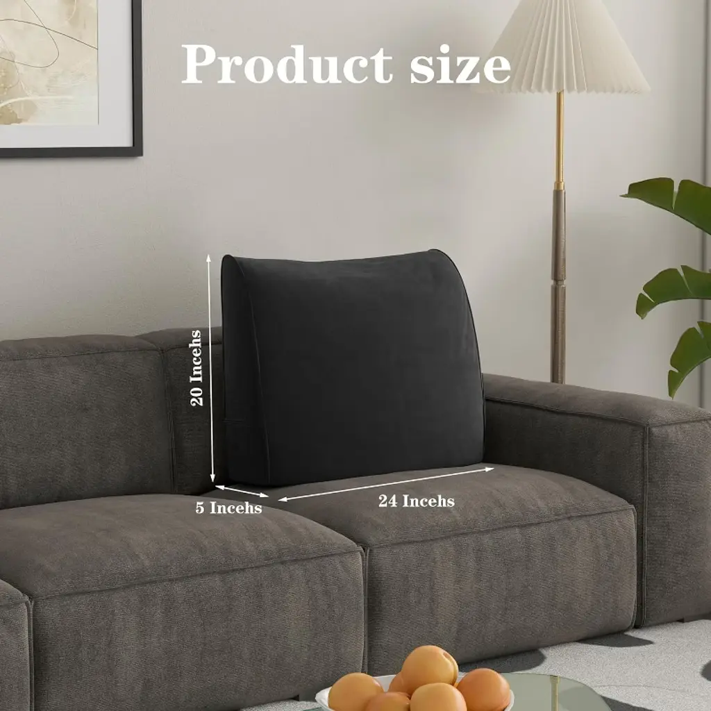 Hachikiko Velvet Back Support Pillow - Removable Cover, Curved Reading Pillow For Bed & Couch, Black (23.5"x20"x5")