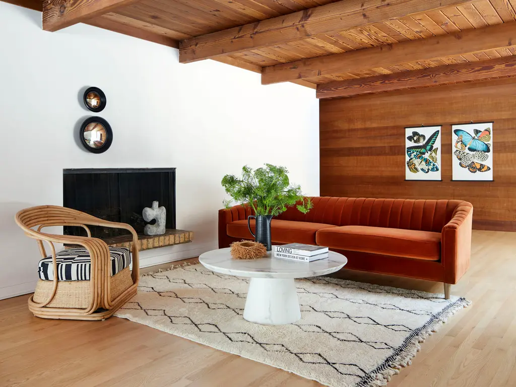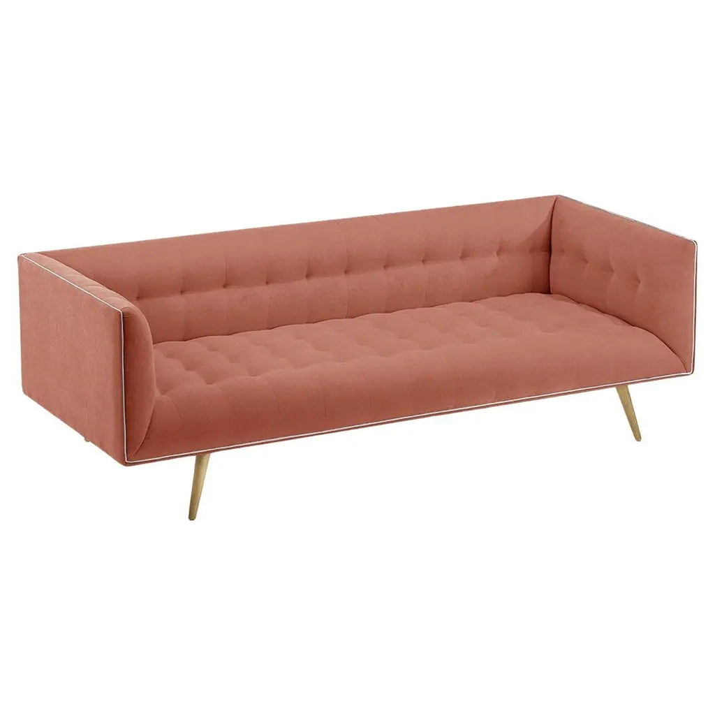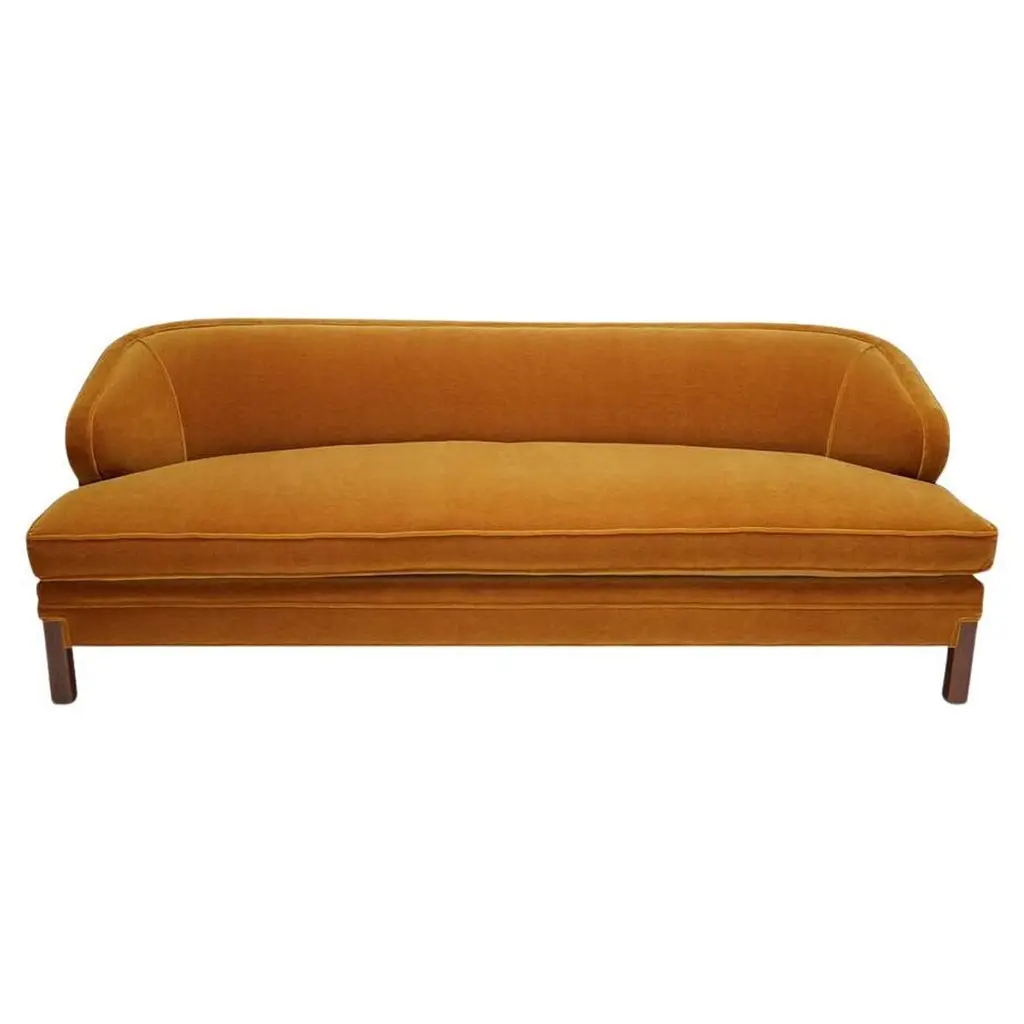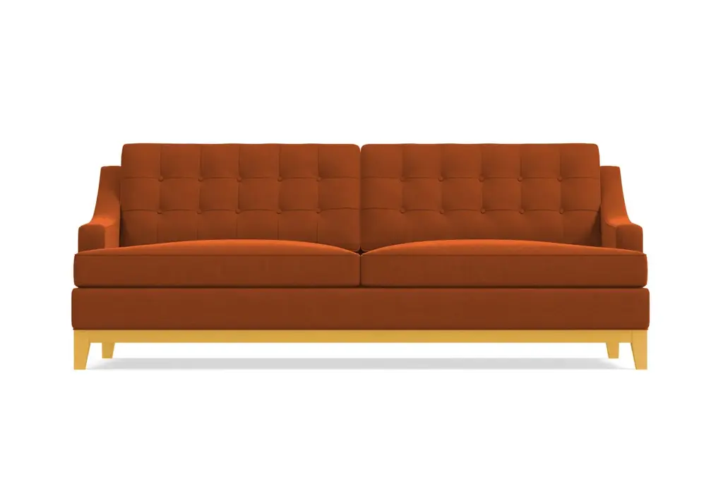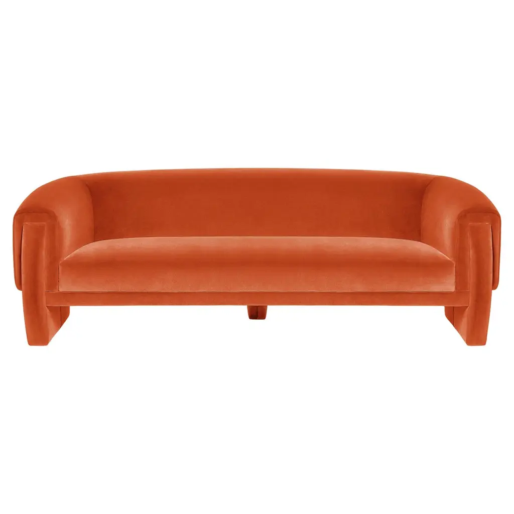 Bring a retro feel to your space with our streamlined Hadley Sofa. Inspired by mid-century design, this chic, low-lying sofa features rounded edges and sumptuous burnt orange velvet upholstery. Vertical channel tufting and tapered parawood legs complete Hadley’s vintage vibe. Along with its good looks, this perfectly p