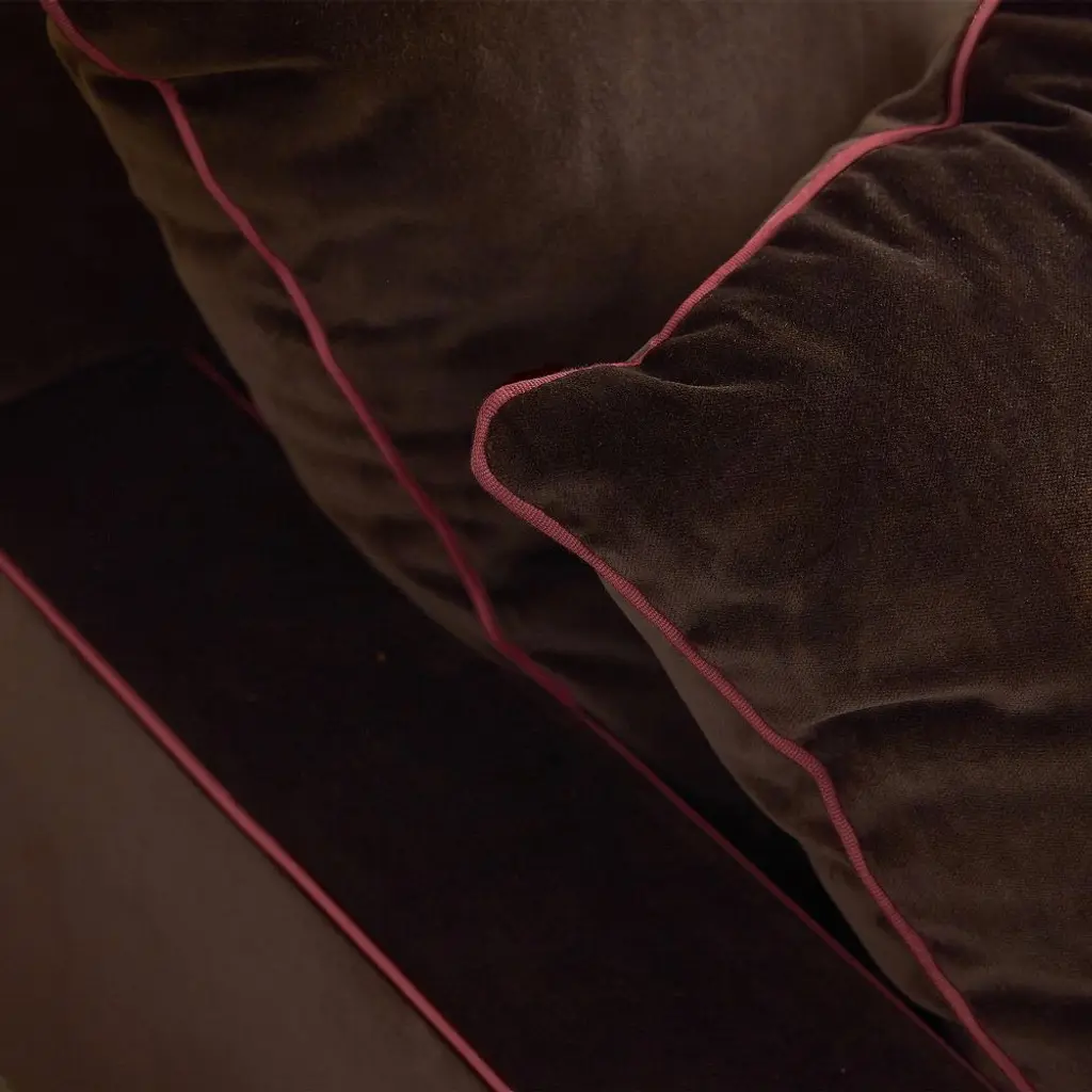 Hadley Upholstered Chocolate Velvet & Pink Piped Sofa