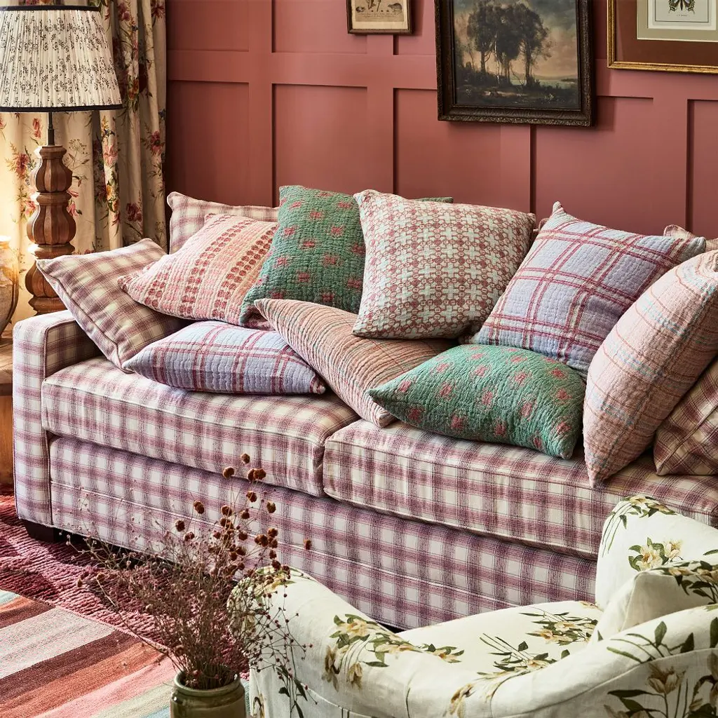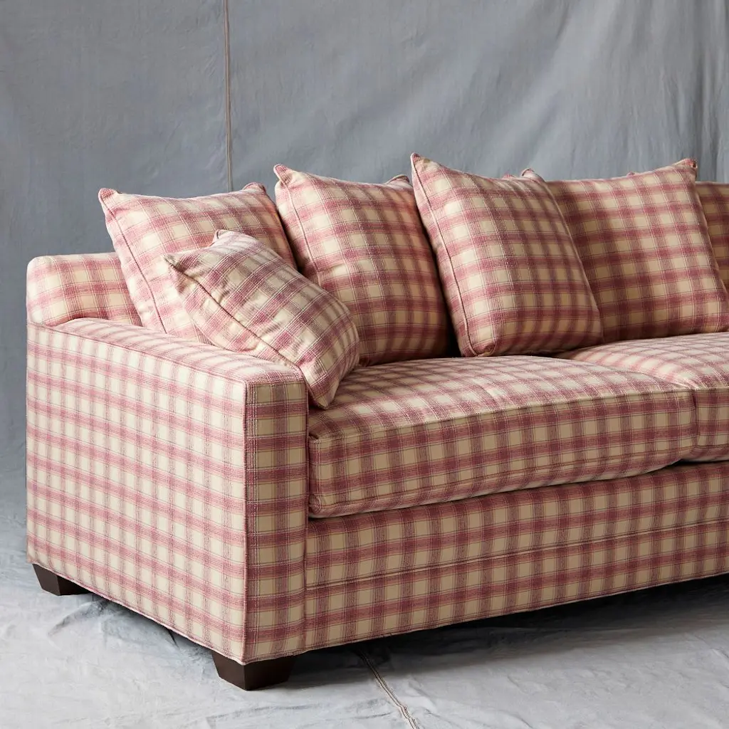 Color and comfort. From its FSC®-certified frame and cushy natural padding to its happy pink plaid upholstery, this sofa is the spot you’ll sink in, stretch out, and live in—day in and out.