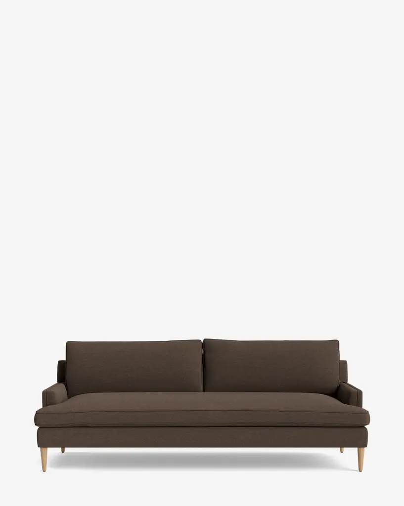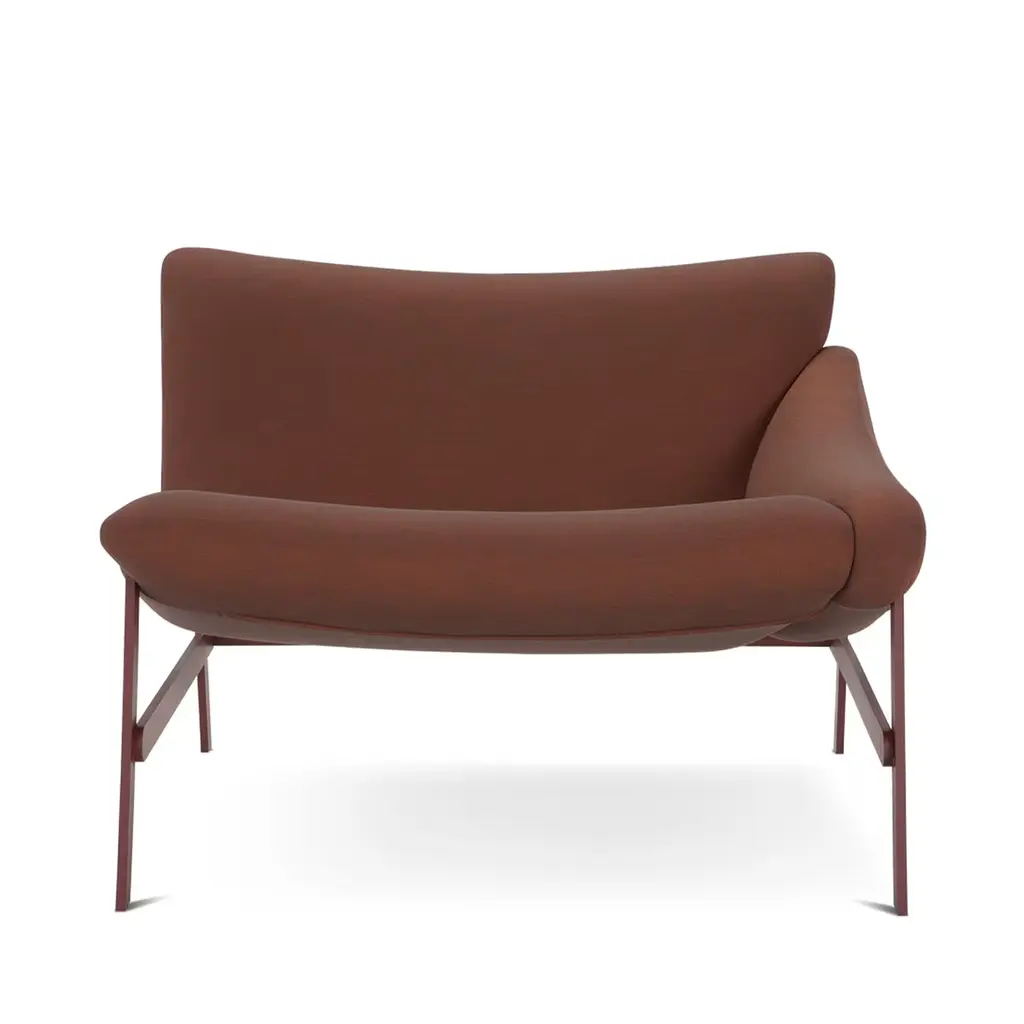 Fluid contours and a multifunctional design unmistakably define this sofa's contemporary flair. Detachable into three distinct seats, the piece is a clever solution that easily adapts to different conviviality layouts. The same brown shade is shared by the metallic structure and the bi-stretch fabric upholstery for a refined monochromatic statement.