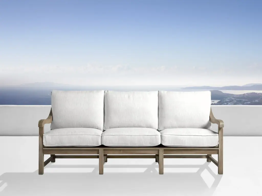 A simply elegant design, our Hamptons Outdoor Collection is inspired by beautiful English gardens. These all-weather furnishings are artisan-crafted from natural teak hardwood and hand-finished to emphasize the wood’s coloring and unique, organic features. Finishing the classic aesthetic, deep and incredibly comfortable cushions are padded with dense and supportive antimicrobial foam covered in a variety of InsideOut Performance Fabrics® to complement your outdoor décor.