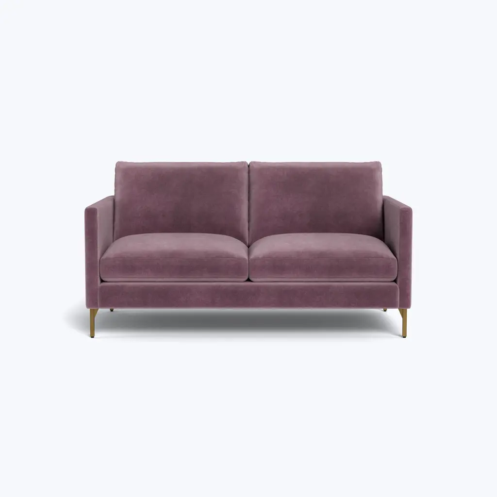 Make a statement in your home with the Hannah Two Seat Sofa, an exclusive offering from abc carpet & home. Designed to elevate your living experience, this sofa perfectly combines style and comfort. The Hannah Two Seat Sofa features slim track arms and sleek legs, adding a touch of elegance to its contemporary design. Its generous dimensions provide ample room for relaxation, making it the perfect addition to any living room or entertainment area. Available in two sizes, this sofa perfectly adapts to any space. Additionally, choose between two leg finishes, brass and silver, to customize the sofa to perfectly suit your unique style preferences. The Hannah Collection is distinguished by its blend-down cushions, a mix of dense foam and feather down that is carefully washed to meet hypoallergenic regulations. These reversible cushions ensure lasting comfort, inviting you to sink in and unwind after a long day. Constructed with a sustainably sourced Goodwood frame, this sofa is not only aesthetically pleasing but also eco-conscious, offering peace of mind as you create lasting memories at home. Customize your Hannah Two Seat Sofa with Cobble Hill's wide range of color and fabric combinations, offering over 80 options to suit your unique style and preferences. Whether it's the Graceland Sorrell 100% Polyester or another fabric of your choice, rest assured that each option is durable, stain-resistant, and easy to clean. Simply select your dream color and fabric scheme, and your custom sofa will be shipped to your home in 8-10 weeks. Proudly made in the USA, each piece in the Cobble Hill collection reflects a commitment to quality craftsmanship and ethical manufacturing practices. Maintaining the pristine condition of your sofa is effortless with simple care instructions. Spot clean with mild detergent and vacuum frequently to keep it looking fresh. For a deeper clean, professional services are recommended. Make every moment count with the Hannah Two Seat Sofa, where comfort and style converge to create unforgettable experiences.