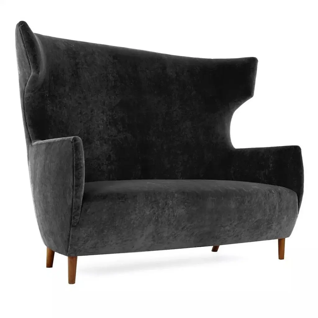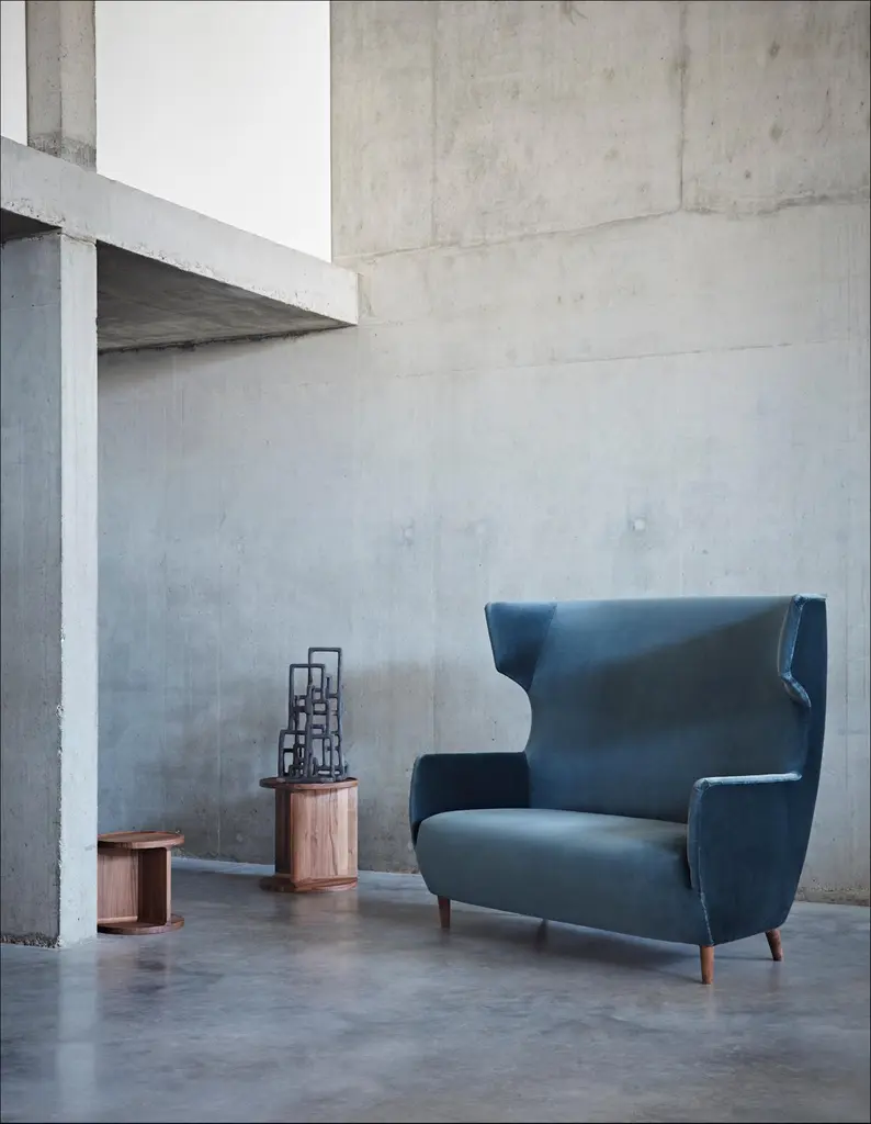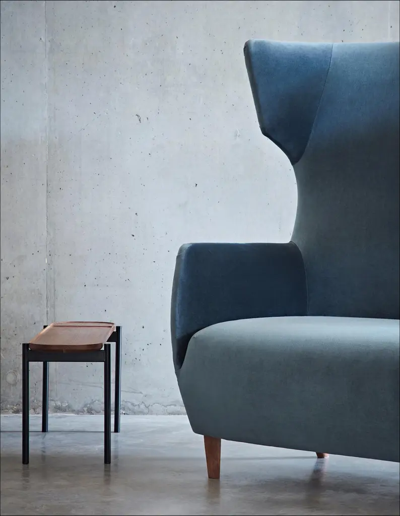 Hardy wingback sofa by Dare Studio, 2011Dimensions: H 125 x D 88 x W 145 cmMaterials: American black walnut legs, Kvadrat Harald 2 fabric.Also available in European white oak. All pieces are available in a different range of fabrics and leathers.Dare Studio is a British design company producing award winning furniture for luxury residential interiors and high specification contract environments. Established by Sean Dare in 2009, Dare Studio champions the skills of the finest craftsmen and sets a benchmark for the very best in contemporary design and manufacture. Working with globally respected designers sharing a holistic understanding of the manufacturing process, Dare strives to create pieces which are timeless, future classics.