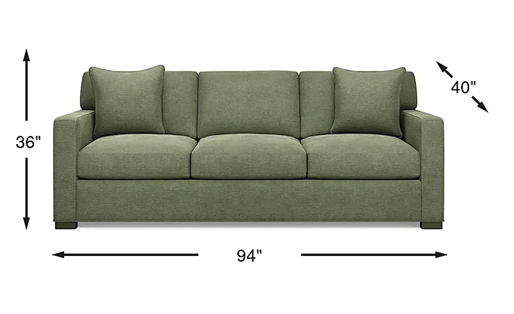 Slow mornings of easy relaxation. Everyday moments of warmth and connection. Lively gatherings flowing effortlessly into the evening. The Harmonie collection from Cindy Crawford Home is there for it all, rising to every occasion with luxurious comfort and elevated form. Wrapped in family-friendly avocado green chenille, this do-it-all sofa offers a perfect blend of versatile function and contemporary style. Refined track arms and top-stitched seams showcase a timeless tailored look that fits beautifully into any home. Gracefully curved, loose cushions are filled with a custom blend of feathers, fiber and down surrounding a supportive foam core for comfort that's soft yet structured. Matching toss pillows at each corner adds a touch of softness, while black block legs provide a subtle contrast to ground the ensemble. Upholstery: 100% Polyester.