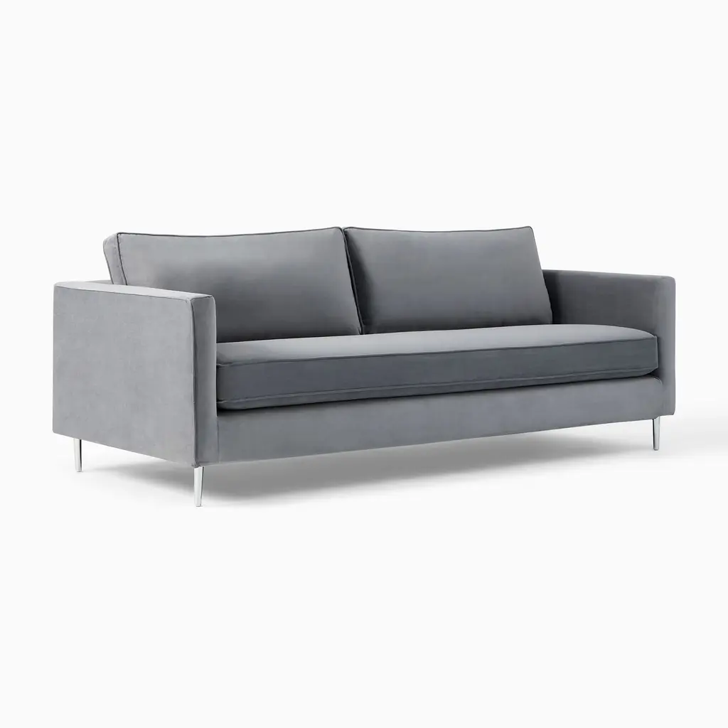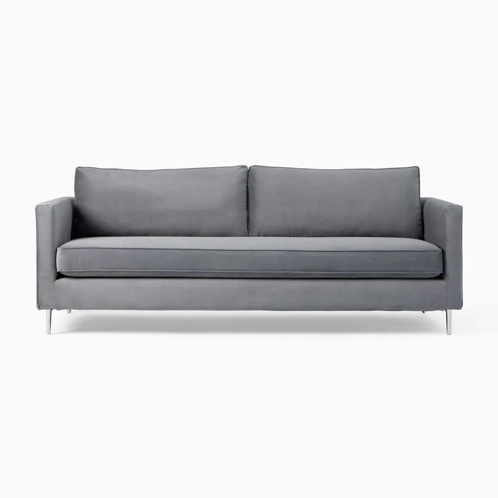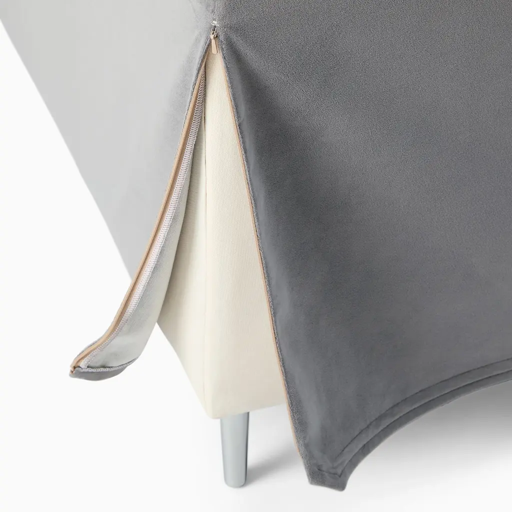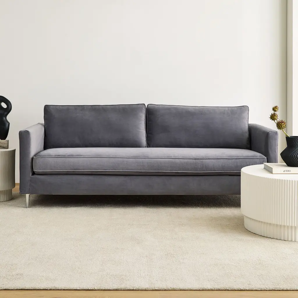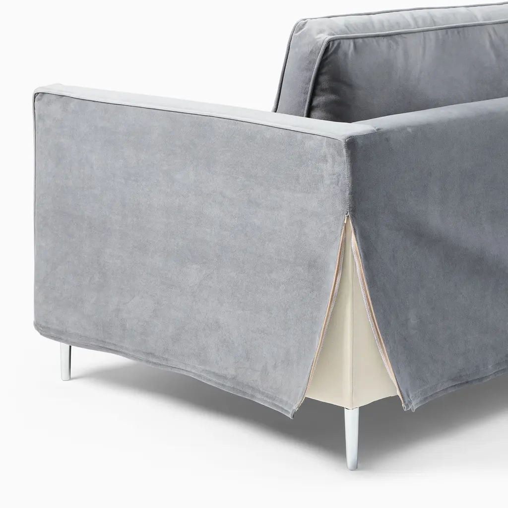 Expertly tailored frame rests on shapely metal legs. Removable fitted slipcover makes cleaning a breeze. In several sizes, so you can find the one that's perfect for your space. Hand-built frames with hand-finished upholstery.
