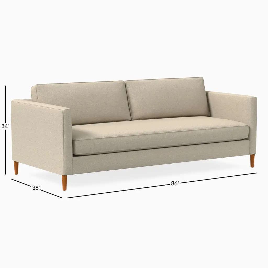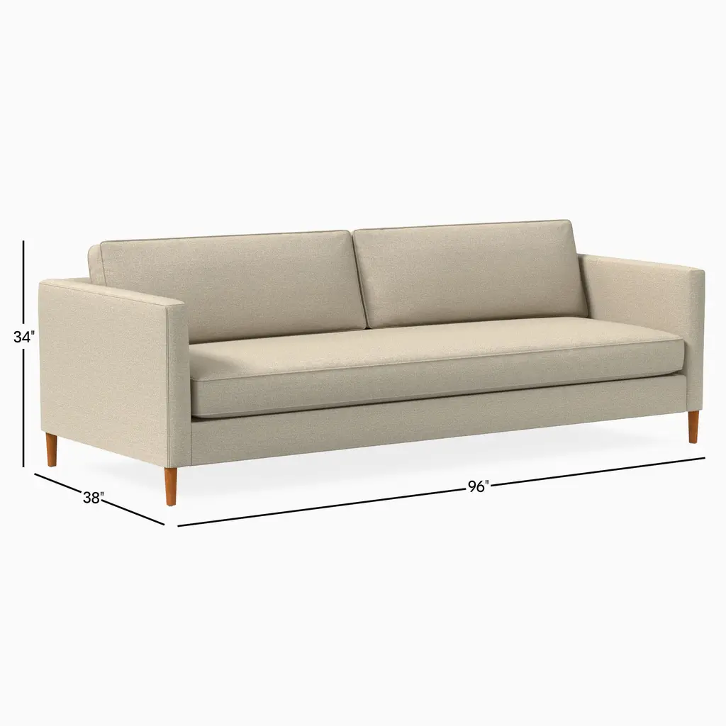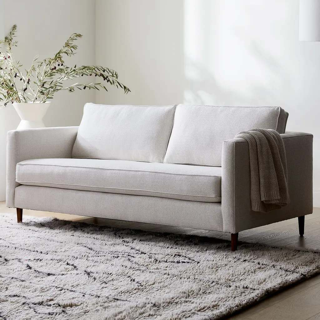 The goes-with-anything design. Its tailored frame rests on tapered wood legs. Hand-built frames with hand-finished upholstery. Several sizes to choose from.