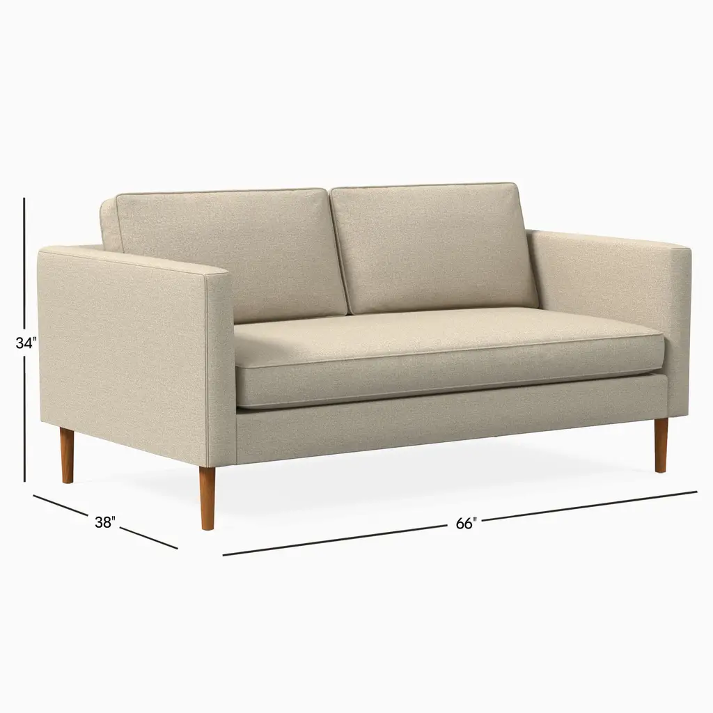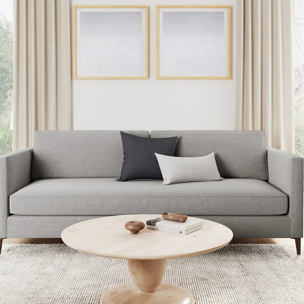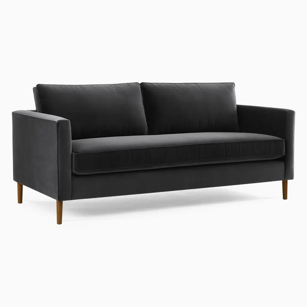 The goes-with-anything design. Its tailored frame rests on tapered wood legs. Hand-built frames with hand-finished upholstery. Several sizes to choose from.