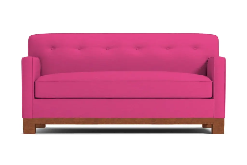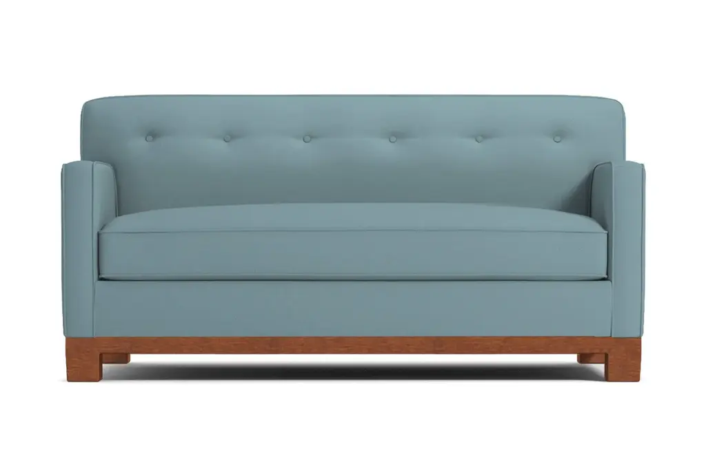 Apt2B specializes in modern apartment furniture and our Harrison Ave Apartment Size Sofa, designed by Kyle Schuneman, is the perfect example of the high-quality pieces we sell each day. This tight back tufted sofa is petite, so it's perfect if you're short on space. It features a streamlined silhouette, high track arms and tapered wooden legs for that sleek modern feel. But it's not just about the looks. The Harrison Ave is a comfortable spot for you to put your feet up after a long day. Available in your choice of fabrics and dozens of different colors, this couch is totally customizable. From microfiber to nylon blend and plenty in between, we're more than happy to send you some free swatches. This sofa was made in the United States and features a limited lifetime warranty. Every room needs a retro flair and the Harrison Ave won't disappoint. This tight back tufted sofa keeps a clean silhouette while still being comfortable. Perfect for a small space because it visually doesn't take up too much space.