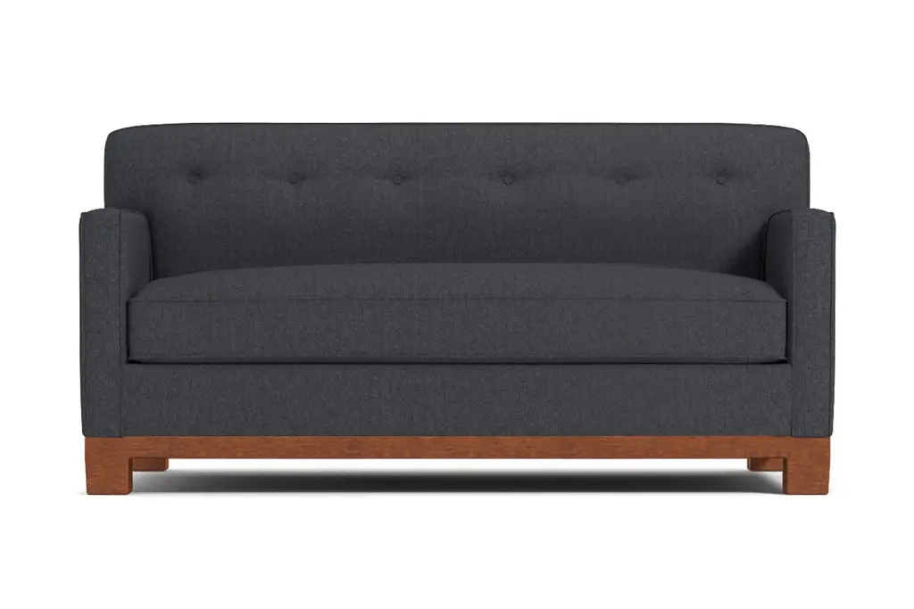 Apt2B specializes in modern apartment furniture and our Harrison Ave Apartment Size Sofa, designed by Kyle Schuneman, is the perfect example of the high-quality pieces we sell each day. This tight back tufted sofa is petite, so it's perfect if you're short on space. It features a streamlined silhouette, high track arms and tapered wooden legs for that sleek modern feel. But it's not just about the looks. The Harrison Ave is a comfortable spot for you to put your feet up after a long day. Available in your choice of fabrics and dozens of different colors, this couch is totally customizable. From microfiber to nylon blend and plenty in between, we're more than happy to send you some free swatches. This sofa was made in the United States and features a limited lifetime warranty. Every room needs a retro flair and the Harrison Ave won't disappoint. This tight back tufted sofa keeps a clean silhouette while still being comfortable. Perfect for a small space because it visually doesn't take up too much space.