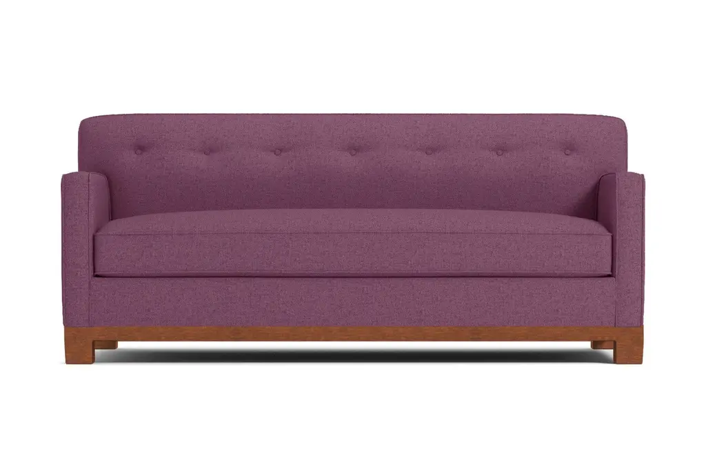 Kyle Schuneman is one of today's hottest designers and when we invited him to partner with us on an upholstery collection, we knew the results would be amazing. So we present to you the Harrison Ave Sofa, a fitting display of retro style. It boasts a tight tufted back and smooth silhouette, while offering you the highest level of comfort. Made in the United States, this sofa features unmatched quality at an affordable price, so you can enjoy your midcentury modern couch without emptying your bank account. This sofa is on the petite side, so it's perfect if your place has limited space. We offer you a choice of nearly 30 fabrics, so have fun browsing our selection. If you can't decide, we're more than happy to send you color swatches for an easy comparison. Every room needs a retro flair and the Harrison Ave won't disappoint. This tight back tufted sofa keeps a clean silhouette while still being comfortable. Perfect for a small space because it visually doesn't take up too much space.